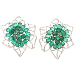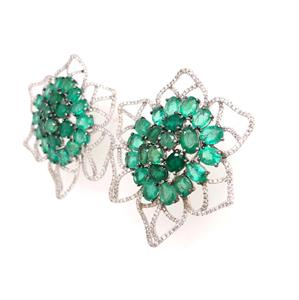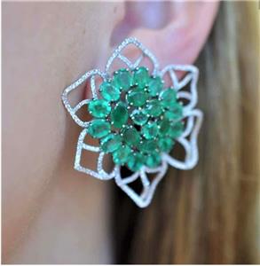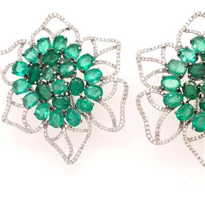 The Following Items we are offering is A Magnificent Pair of Estate 18KT Gold Shimmering Green Emerald and Diamond Earrings, the Earrings in the form of flowers, the "petals" set with Gorgeous Diamonds and adorned with Shimmering Emeralds at center. T.C.W. Over 17CTS!!!