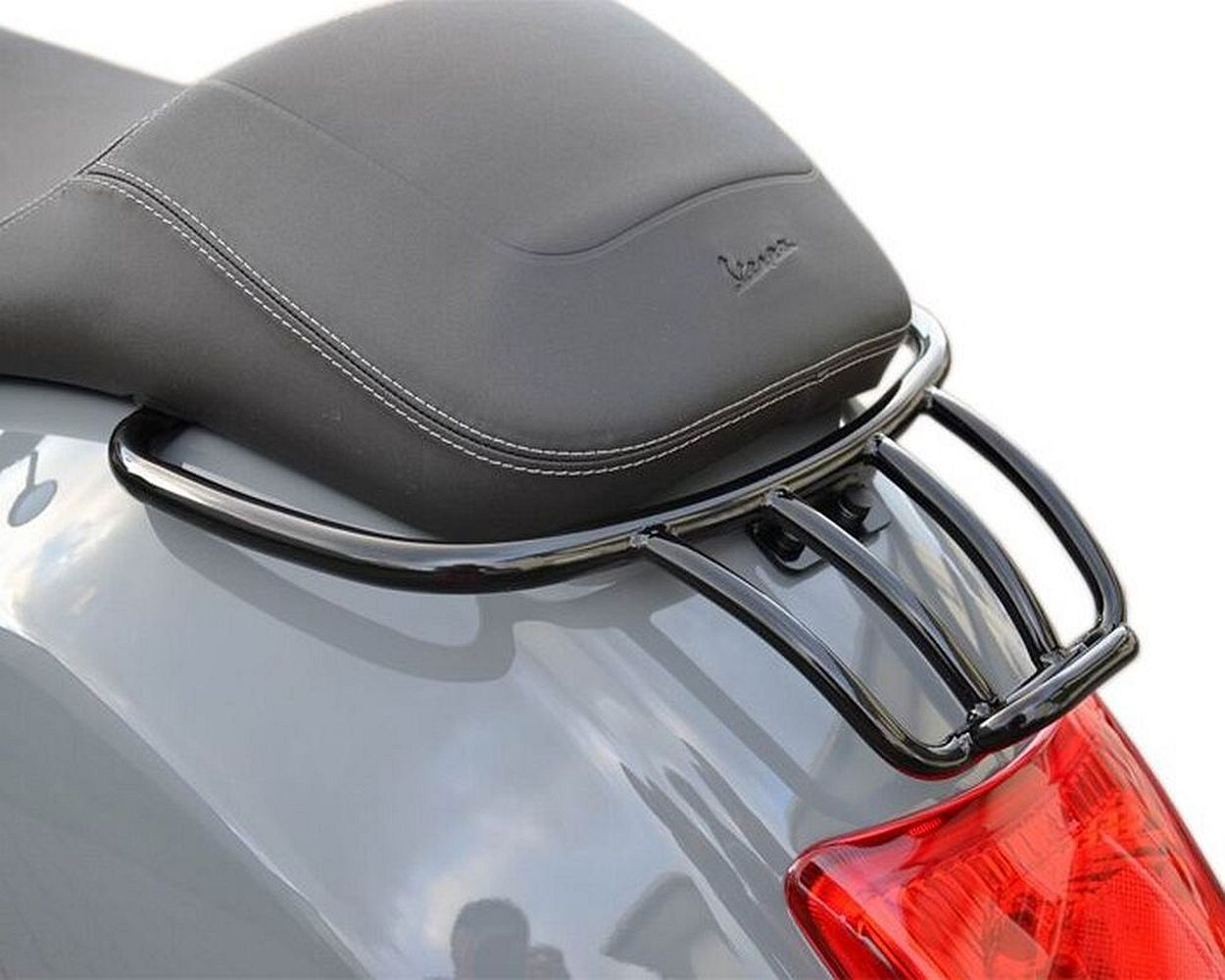 Moto Nostra Gepäckträger, der viele Vorteile in einem einzigen Accessoire vereint. Nicht umsonst ist dieser Typ der beliebteste und meistverkaufte aus unserem Gepäckträgerprogramm. So bietet er neben den Haltegriffen für den Sozius auch die Möglichkeit auf dem stabilen minirack ordentlich Gepäck zu verzurren. Dabei hält er sich optisch angenehm zurück und unterstreicht dezent die schönen Vespaformen. Damit ist er ideal für alle, die einen ästhetischen Anspruch an ihr Fahrzeug stellen, gleichzeitig aber eine hohe Praxistauglichkeit nicht missen wollen. Den Moto Nostra Gepäckträger gibt es in verchromt als auch in matt oder glänzend schwarzer Pulverbeschichtung.