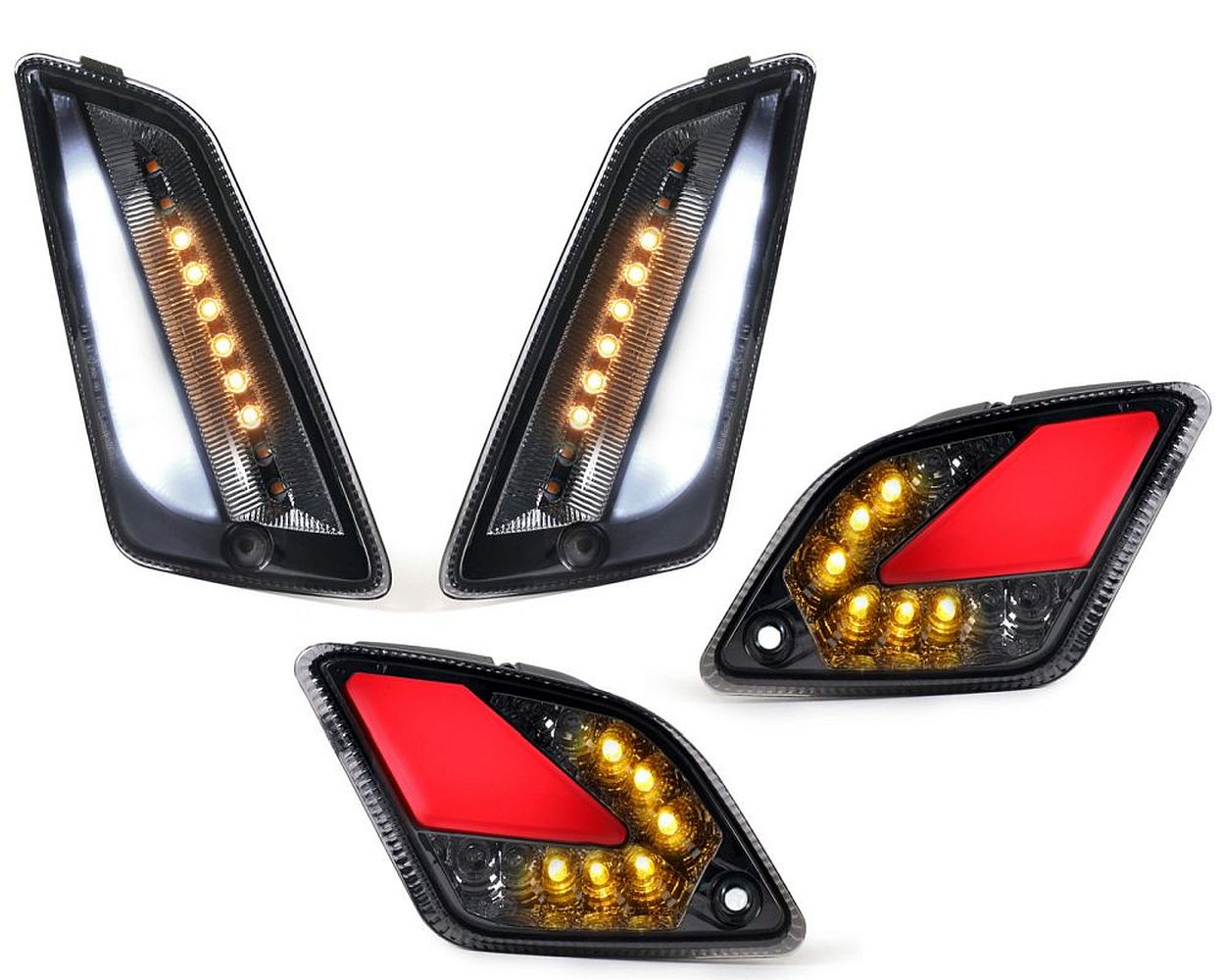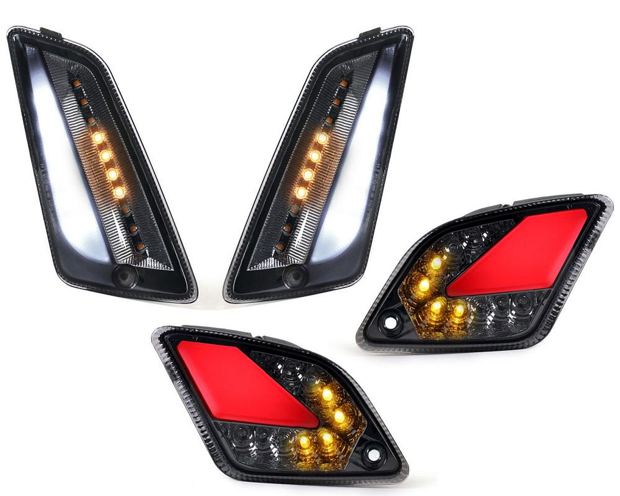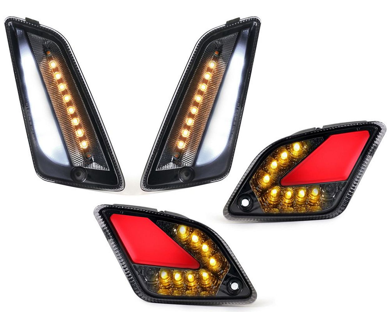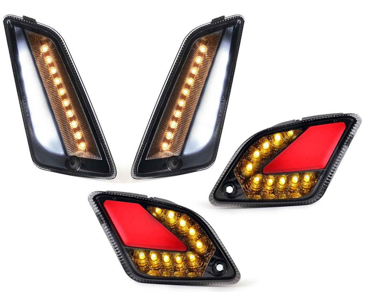 Durch diese neue Technik wird die optische Breite des Hecks im dunkeln vergrößert, die Wahrnehmung im Straßenverkehr verbessert sich deutlich. Die hellen LED der Blinker sind bereits aus weiter Entfernung gut wahrnehmbar. Das Lauflicht wird zudem optisch besser erfasst als bei einem konventionellem Blinker.LOOK