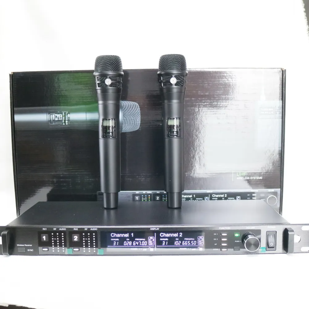 1. True diversity, 2 Channel wireless handheld microphones, short circuit protection function; infrared automatic frequency matching, pilot frequency function Four antenna signal strengthened reception (multi-level high-frequency filter design has strong anti-interference ability and no noise)