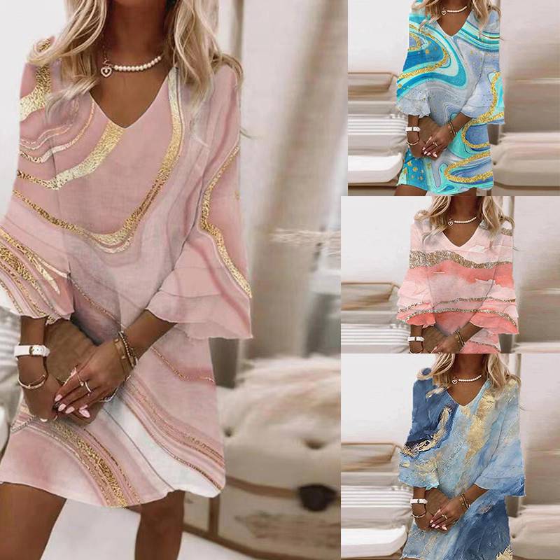 Short sleeve dress adopts good polyester material, it is soft
