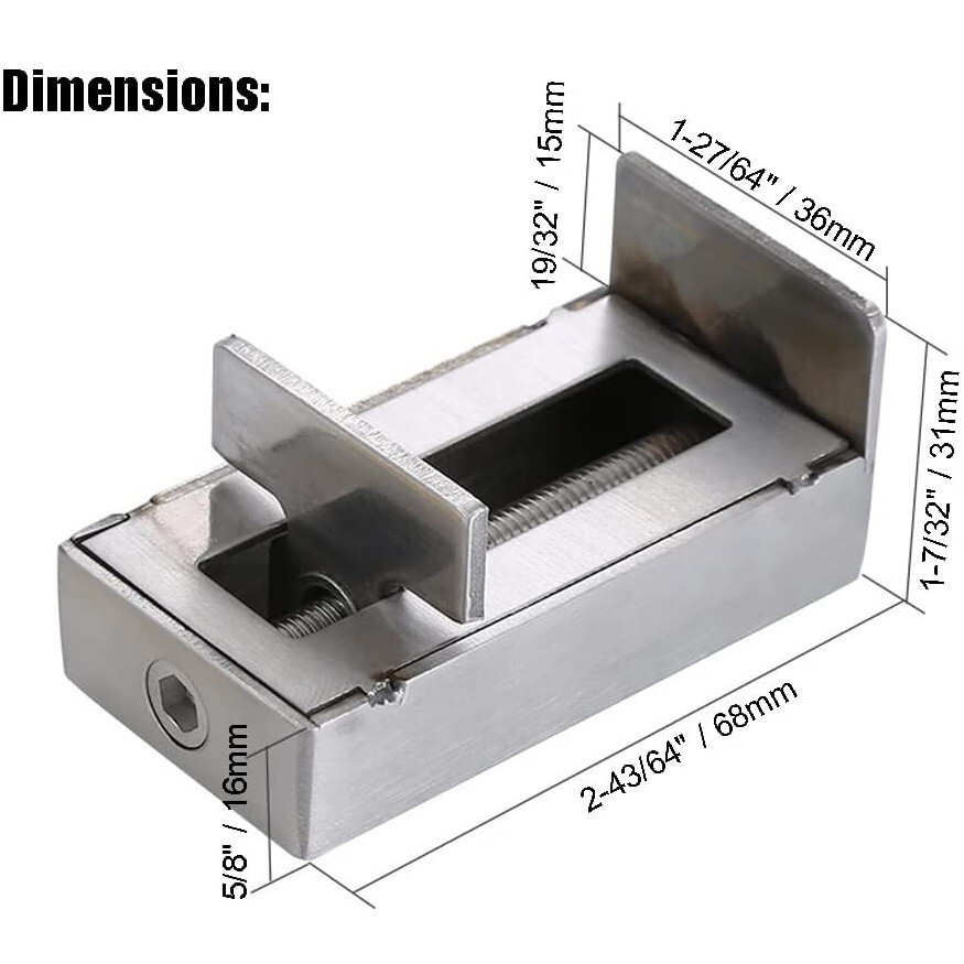 The size is about 2-43/64"x1-27/64"x1-7/32" / 68mm x 36mm x 31mm and the clamping distance is between 18-60mm /45/64"-2-23/64". Please check your window track before buying.