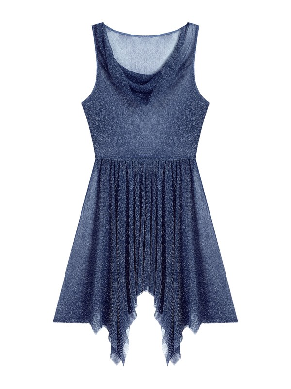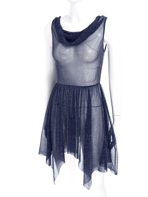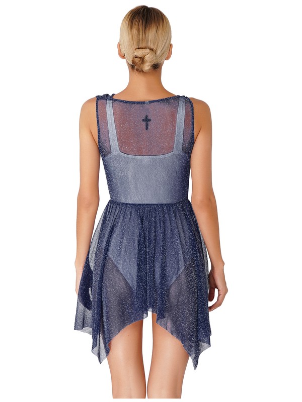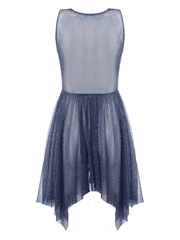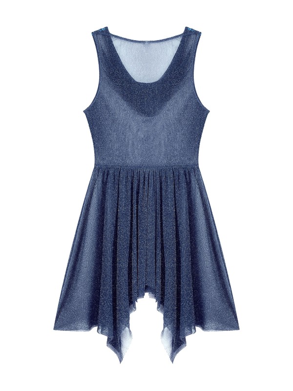Ärmelloses Tanzkleid für Frauen, durchsichtiges Design, drapierter Hals und asymmetrischer Saum sorgen für ein modisches Element.