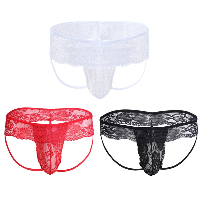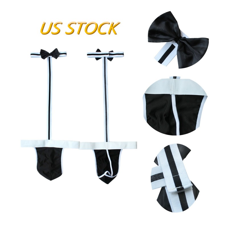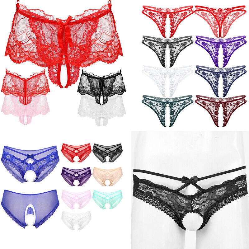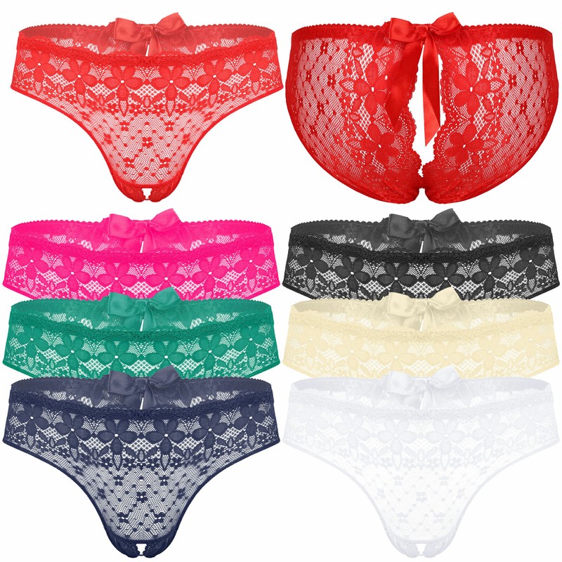 Men See-through Lace Crotchless Skirted Thong T-back Bowknot G-string Lingerie Underwear.
