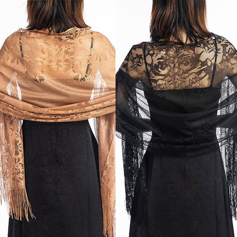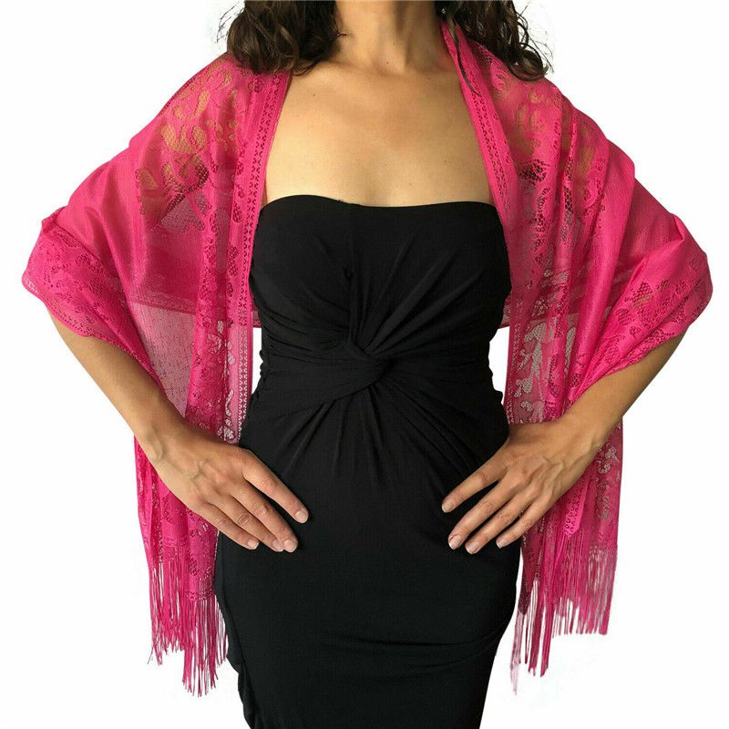 SOFT, SILKY & LIGHT LACE WRAPS Ladies Tulle WEDDING WRAP Black, Navy Blue, Grey, Red, White, Pink Evening Shawl Wrap Scarf Cover Ups Scarf Gift for Mother Sister Friend or Loved Ones Very Good Quality Product Description: Size: 190cm x 65cm (Inc. Tassels) Color :15 kinds Weight:75g Package Content: 1 X Scarf Notes: 1.Please compare the detail sizes with yours before you buy. 2.Colors may be slightly different depending on computer and monitor settings. 3.Please allow 1-3cm differs due to manual measurement (All measurement in cm and please note 1cm=0.39inch, 1inch=2.54cm)