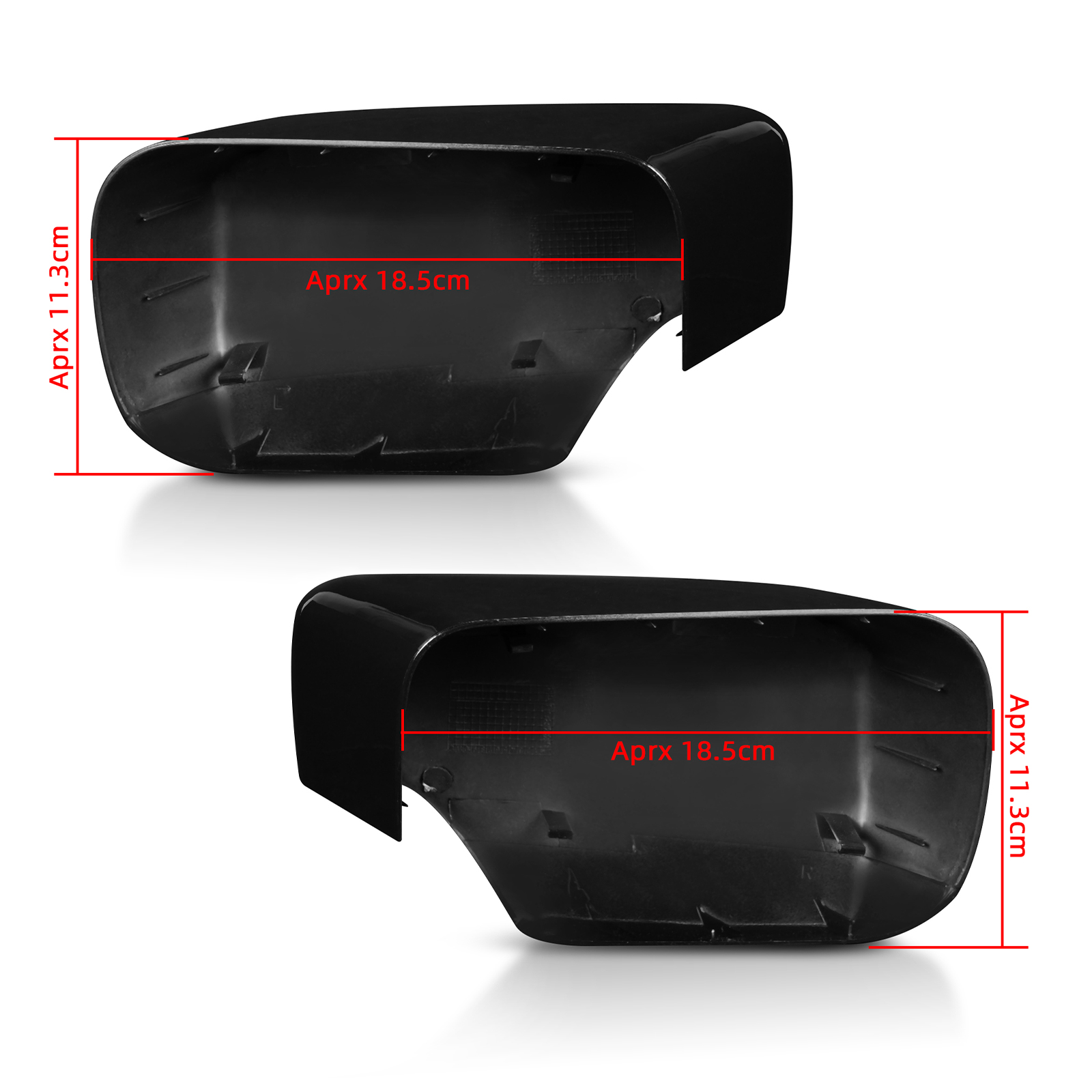 ---For E39 5-Series buyers, there are two versions for E39 mirror cover,this mirror cover measures 18.5cm in length,the other one is bigger,length measures 20.5cm.