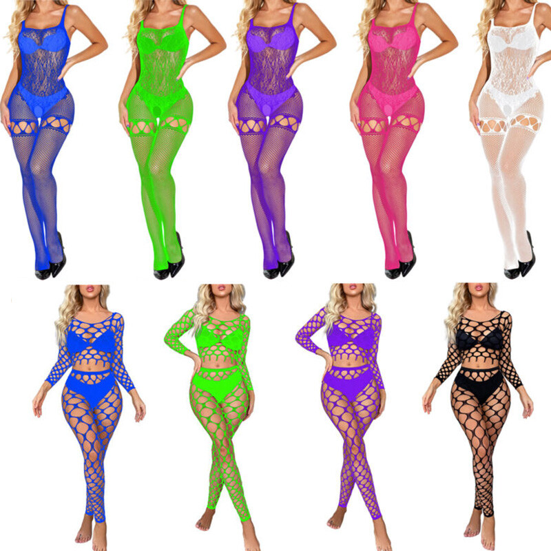 Womens See-through Mesh Crotchless Bodysuit Hollow Out Halter Backless Leotard Lingerie Nightwear.