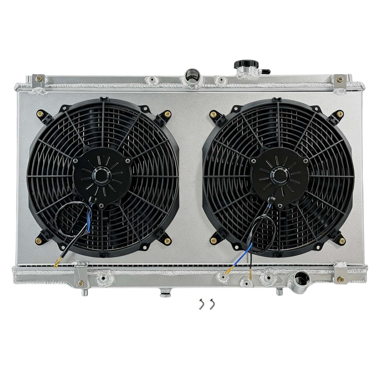 This is 2 Row THICKNESS Aluminum Radiator with Cooling Fan Shroud & 12"*2 Cooling Fan