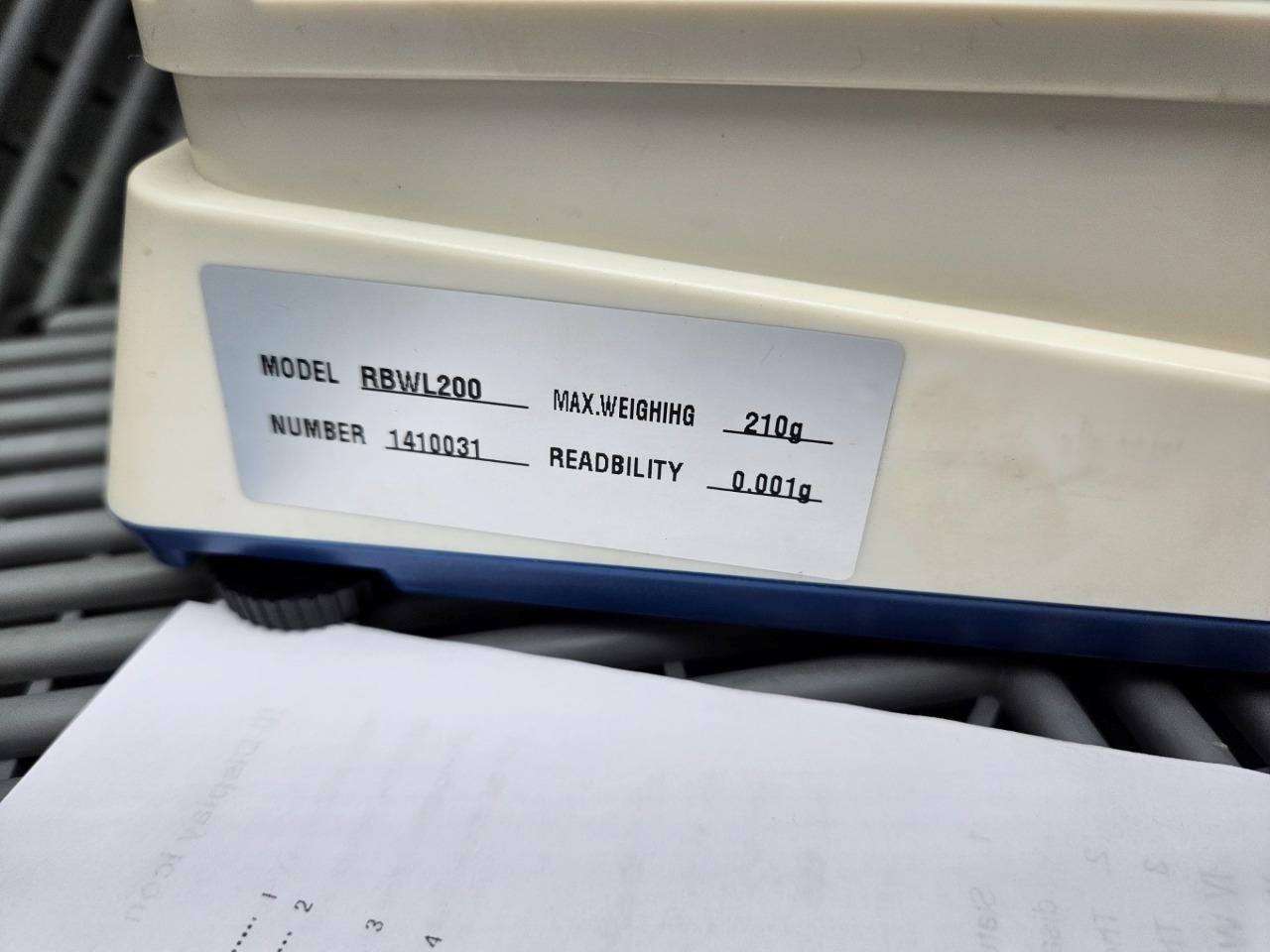 Here is an Electronic Precision Balance RBWL200 Analytical Balance 0.001g - 210g. This item is new and in an open box. It comes with all of its attachments and 2 weights.
