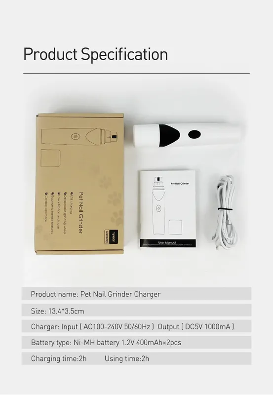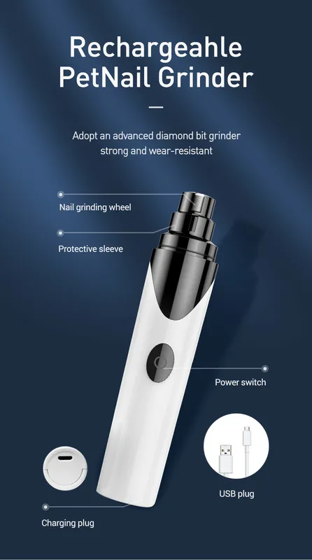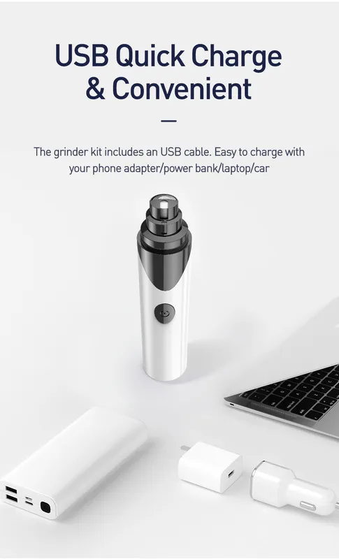 Pet Nail Grinder Rechargeable USB Nail Trimmer Clipper, Ultra Quiet Dog Grinder for Cats Birds and Other Small & Medium Household Pets (N8)