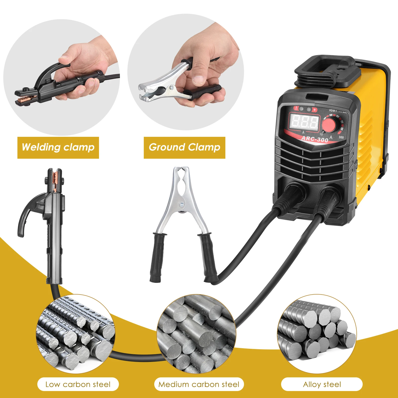 Our arc welding machine is 300 (A) 220V, AC and DC inverter welding machine, the current output is stable, copper and iron loss is greatly reduced, welding efficiency and energy saving effect are significantly improved. It can withstand welding all day. The arc welding machine can perfectly handle all-day welding with 1.6mm-3.2mm electrodes, and the machine can also be used for ordinary welding with 4.0 electrodes. It is a smart home welding with high frequency and high work efficiency. Suitable for welding stainless steel, alloy steel, carbon steel and other metal materials.