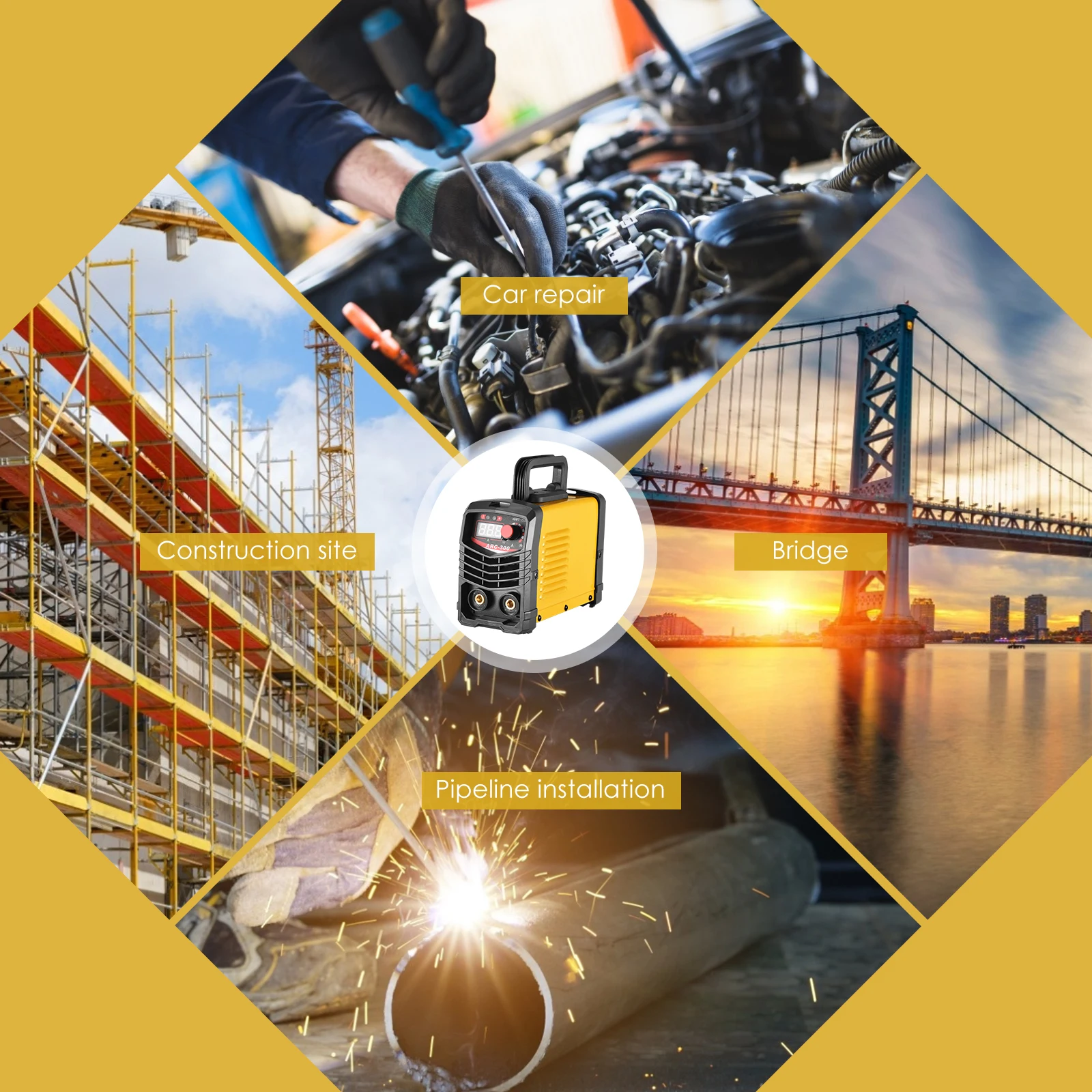 The welding machine is suitable for welding rods below 2.5mm, suitable for welding low-carbon steel, medium-carbon steel, alloy steel and other iron metals. Fully digital control system, precise control, stable arc length during welding. Easy to use for beginners and professionals. It is very suitable for outdoor maintenance, maintenance and repair of agricultural equipment and road equipment. The welding machine is suitable for DIY, maintenance, repair and metal processing purposes.