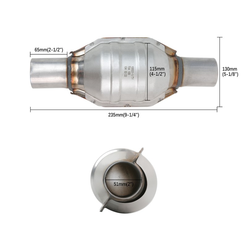 VEHICLE FITMENT: Universal Catalytic Converter fit for vehicles with 2 inch outer diameter exhaust pipe.