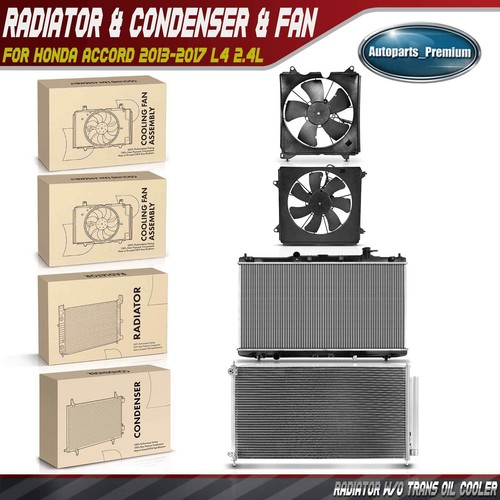 4x Radiator & AC Condenser & Cooling Fan Kit for Honda Accord 2013-2017 L4 2.4L
