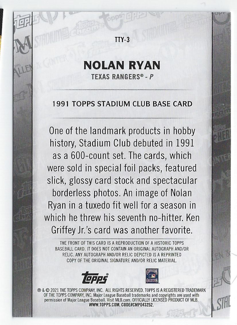 | 2021 Topps Through the Years Nolan Ryan #TTY-3 READ&SAVE, Insert Texas Rangers | ||||||||||||||||||