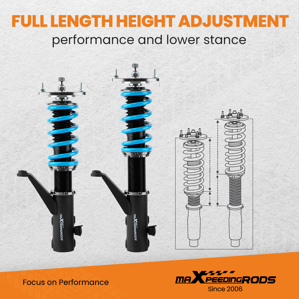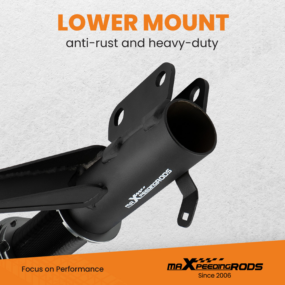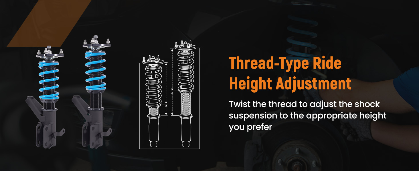 1. Lowered height adjustment from 1" - 3" (depends on vehicle models)which allow lower center of gravity and also add a more aggressive stance