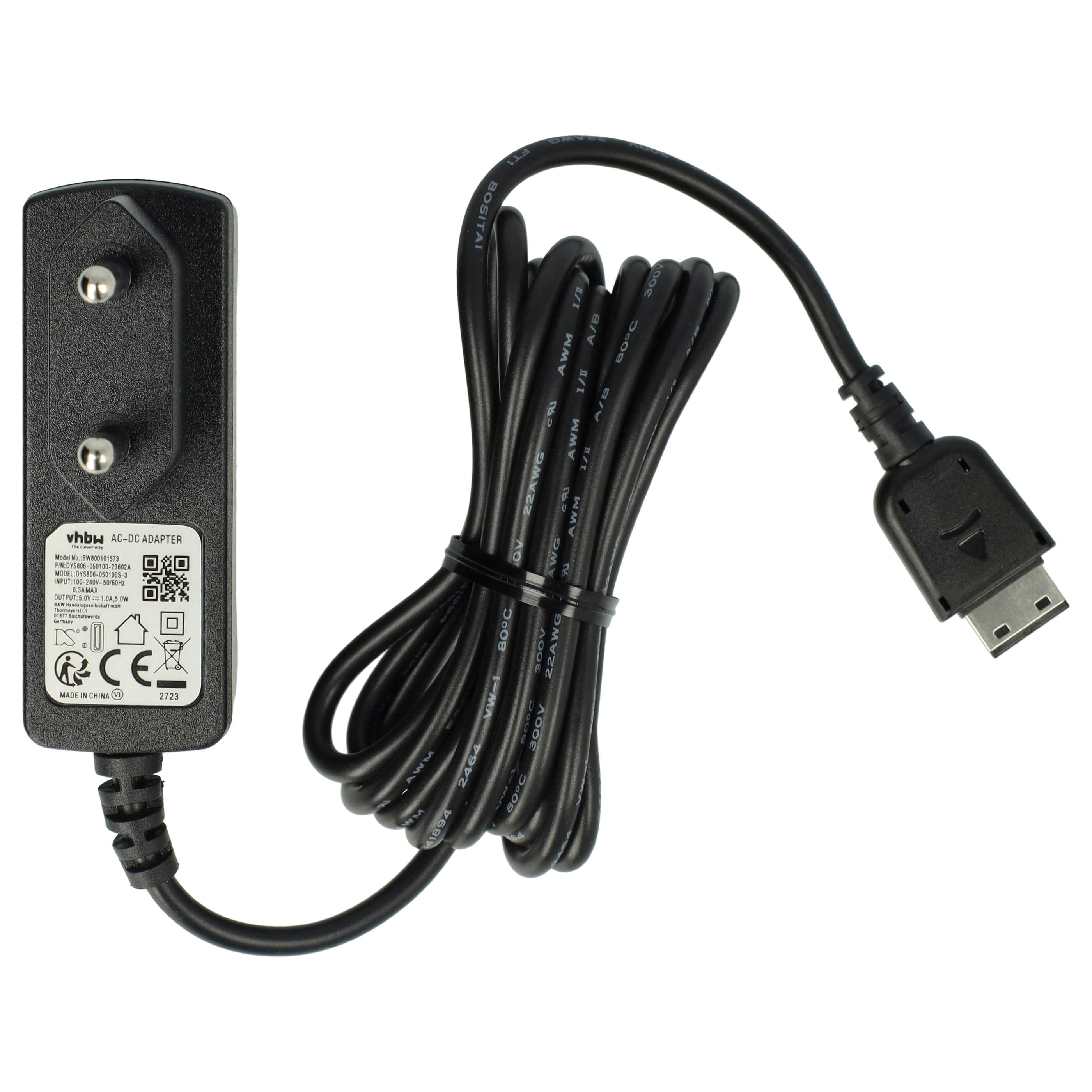 vhbw Chargeur de rechange, câble de chargement pour Samsung GT-C3060, GT-C6112, GT-C6712, GT-E1081T, GT-C3510, GT-C5212i téléphone portable, smartphone; env. 115cm; noir