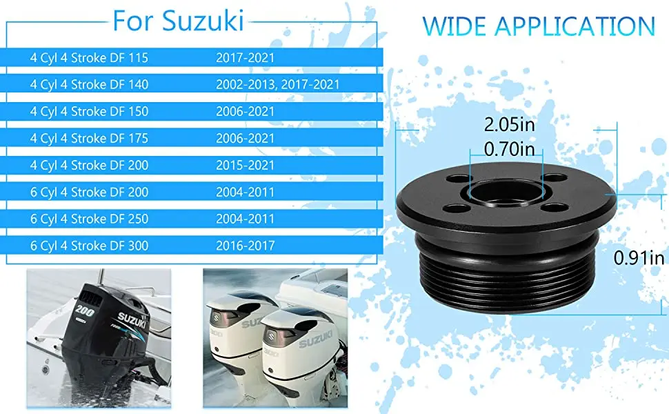 - Detailed model reference -- Fit for Suzuki--4 Cyl 4 Stroke DF 115(2017-2021), 140(2002-2013, 2017-2021), 150(2006-2021), 175(2006-2021), 200(2015-2021); 6 Cyl 4 Stroke DF 200(2004-2011), 250(2004-2011), 300(2016-2017).