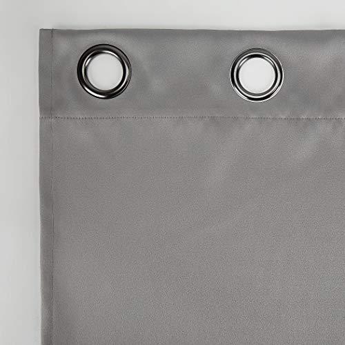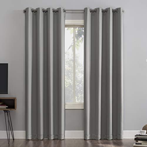 Sun Zero Oslo Theater Grade Extreme 100% Blackout Grommet Curtain Panels provide the ultimate in light blocking technology to keep out even the harshest of light while bringing an elegant urban sophistication to any room of your home. Sun Zero Extreme Blackout technology is laboratory tested to block out 100% of light, reduce outside noise by up to 45%, and decrease energy lost through your windows by up to 50%. Comfort is optimized with thermal properties that help keep summer heat and winter chill out of your home. Built-in metal grommets allow for easy slide-through installation on curtain rods up to 1.5" in diameter. Hang in your entertainment room to eliminate screen glare and reduce distracting outside noise, or in your bedroom for enhanced privacy and a sounder, more uninterrupted sleep. Sold as individual panels measuring 52" width by 54" length in color silver gray. Measure carefully before selecting your desired size and quantity. Rod not included. Machine wash cold on gentle cycle. Use non- bleach when needed. Tumble dry on low heat, using a cool iron as needed.