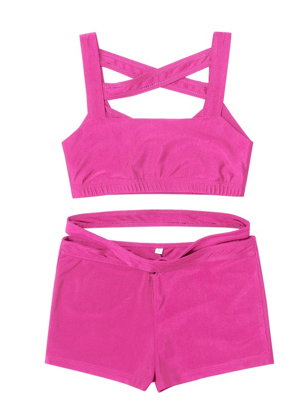 Passende Shorts mit elastischem Bund, Riemenkreuz in der Taille zur Dekoration.