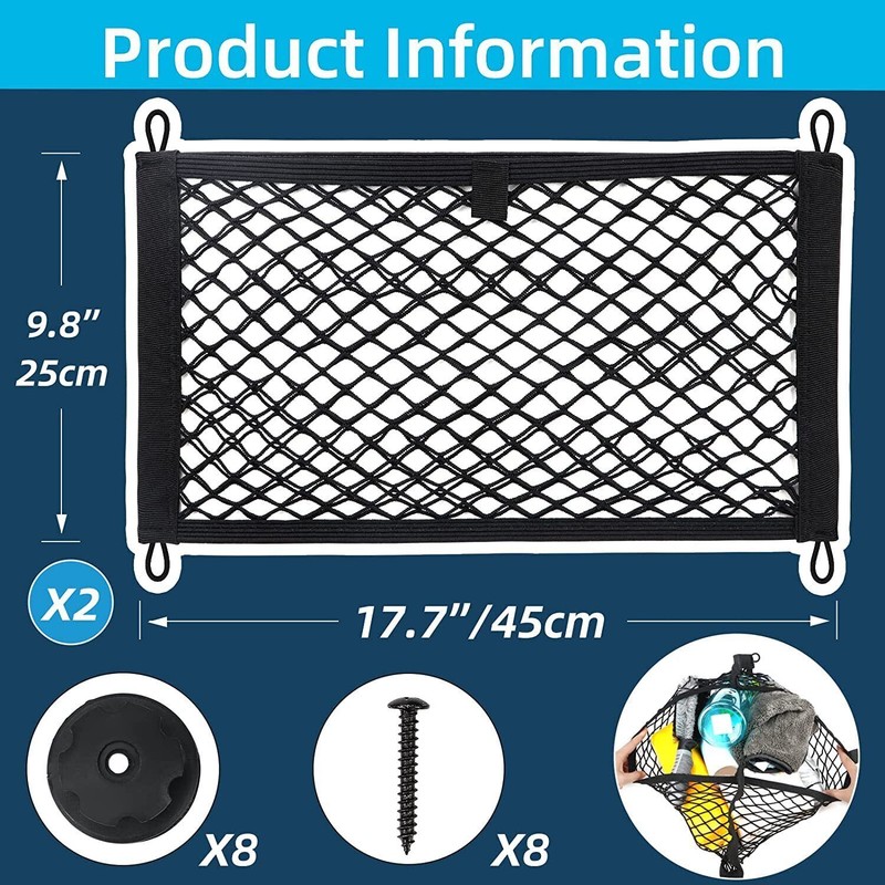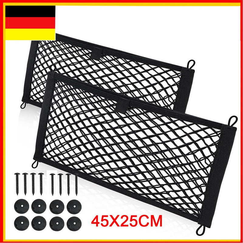 【Paket】 2er-Pack 45 x 25 cm elastisches Taschennetz, 8 Stück x Schrauben und 8 Stück Halterungen (alle Montageteile im Lieferumfang enthalten).