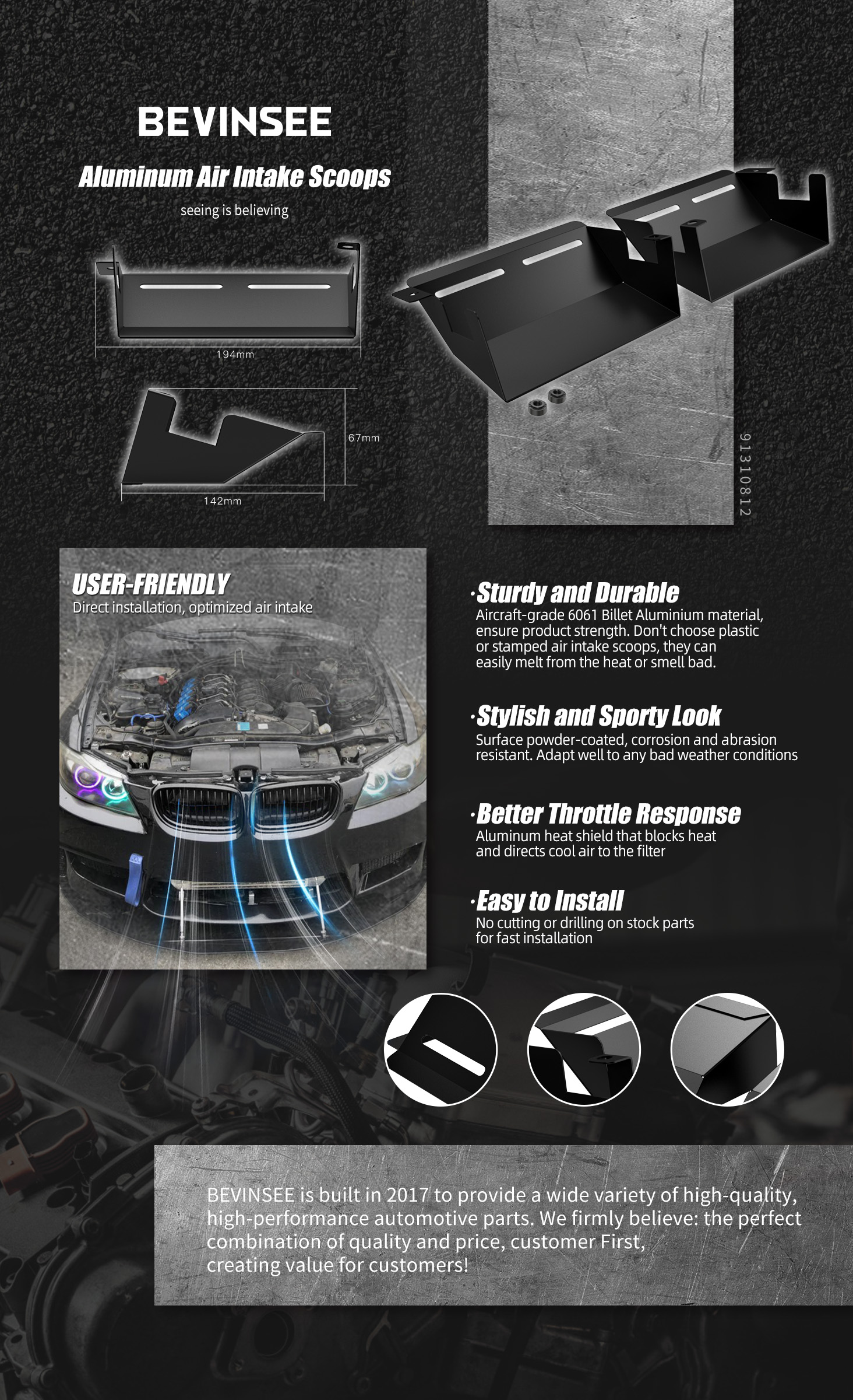 【Aircraft-grade Aluminum】Made of lightweight powder-coated black aluminum for strength and styling. Don't choose plastic or stamped air intake scoops, they can easily melt from the heat or smell bad.