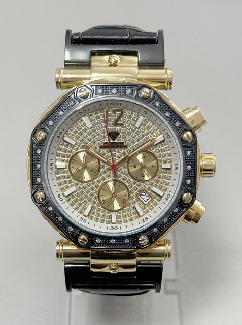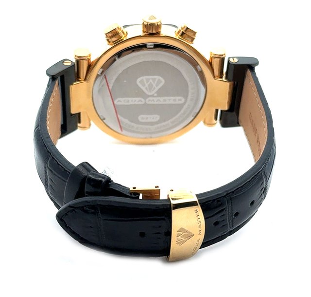 Watch Information: Gender: Men's Case Size: 45mm Dial Color: GoldMaterial Band: Leather Movement: Analog Quartz Water Resist: 30 Meters Water Resistant Features: 0.24ct Diamond Additional Info: Packaging: Aqua Master Original Box