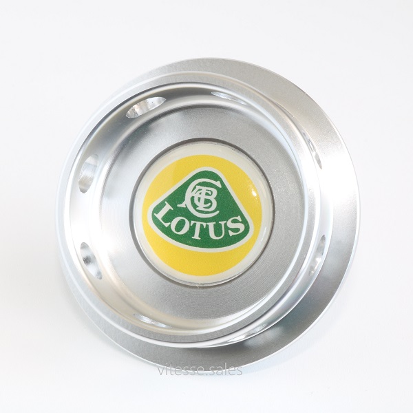 CNC machined from a solid aluminium billet, anodised silver with the classic Lotus emblem in the center and fitted with a new oil seal