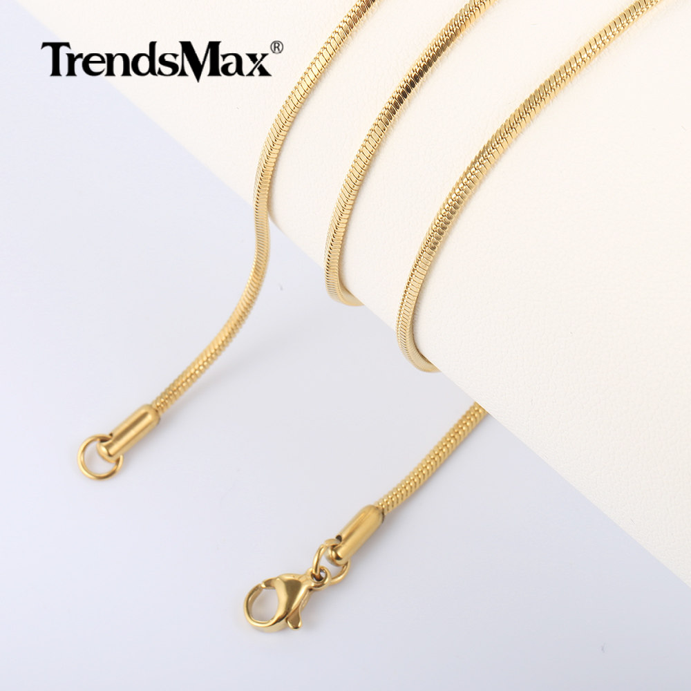 0.9-2.0mm Gold Plated Stainless Steel Square Snake Chain Necklace Women Men Link