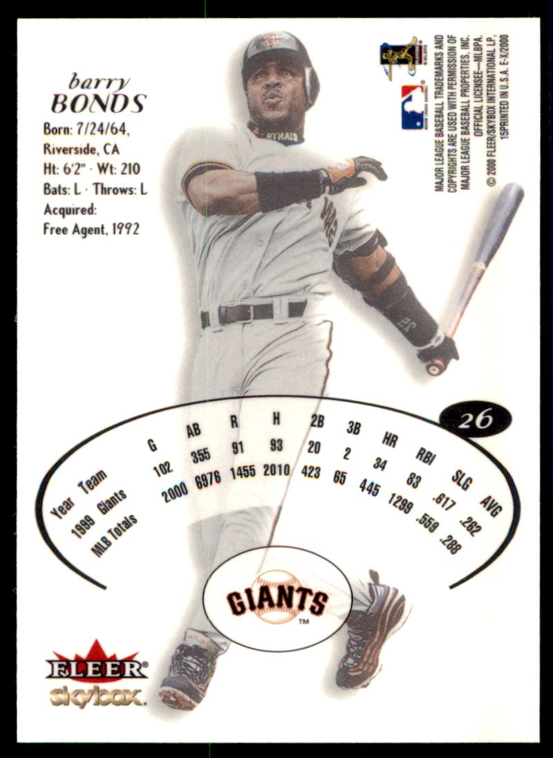 | 2000 Fleer Skybox EX # 26 BARRY BONDS | ||||||||||||||