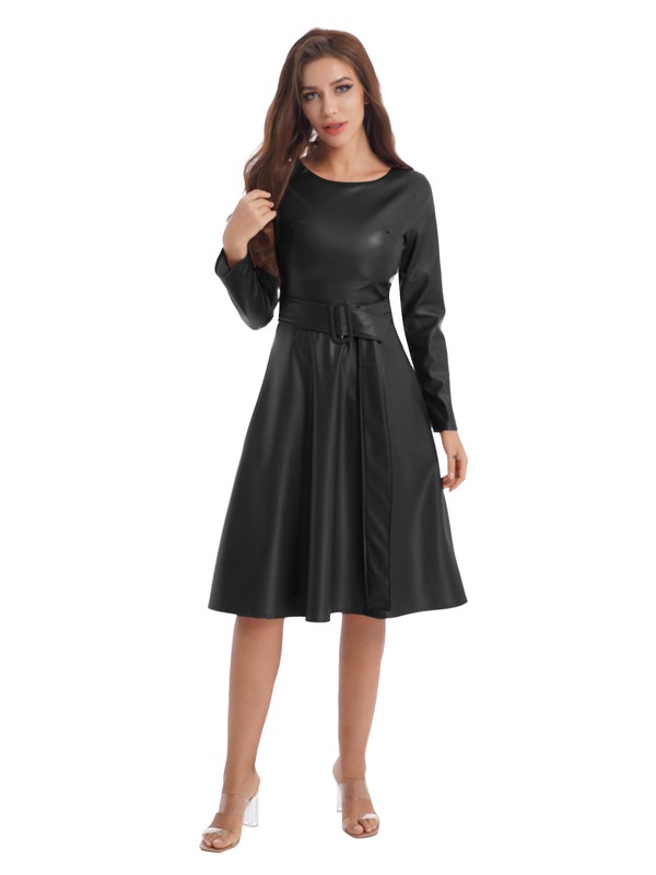 Glossy patent leather tank dress for women, sleeveless, u neck, slim fit highlights your body curve.