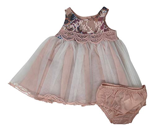 Bonnie Baby Sleeveless A-line Dusty Rose Pink Toddler Girls Dress-up Dress with Lace Floral Print Bodice and Multi Layered Tulle Skirt and Matching Bloomers
