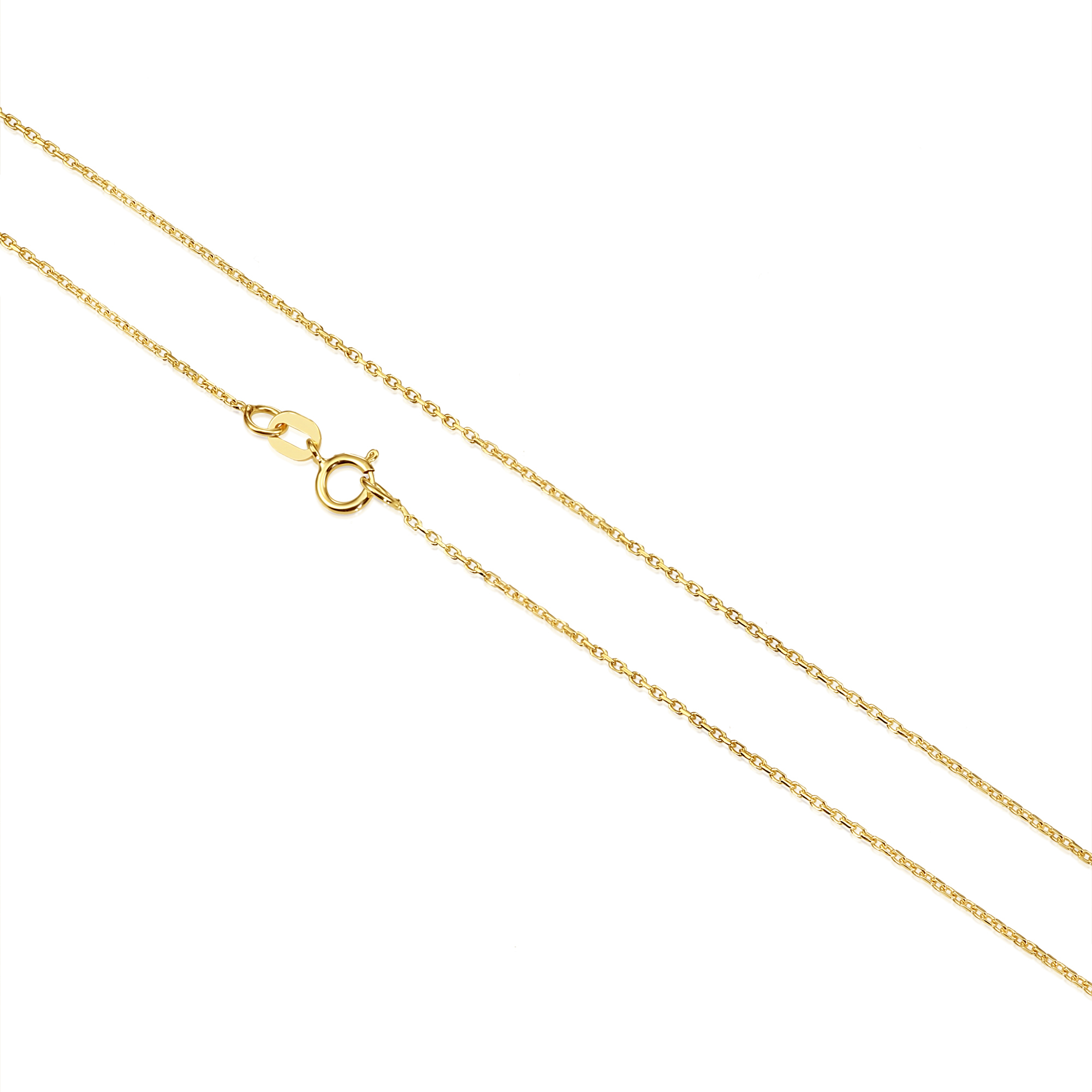 This cable chain is made from solid 14k gold and is the perfect thickness for any lightweight pendant. Designed with durability in mind, it features a reliable spring lock to ensure the chain stays intact while worn, without the risk of tearing or snapping.