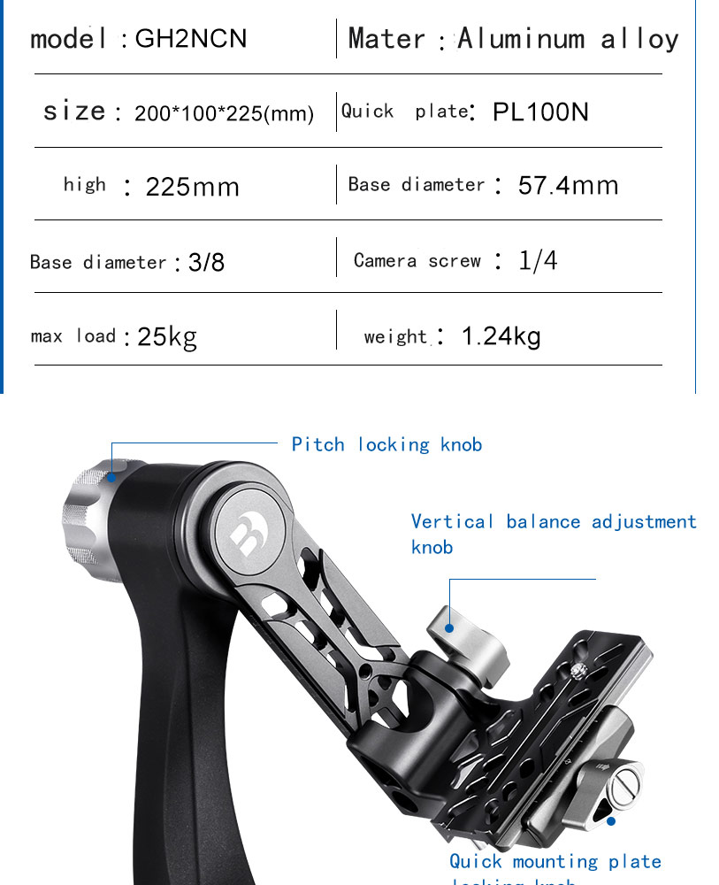 LEOFOTO LH-40 Tripod Head 40mm Low Profile 360 Degree Ball Head with QR Plate