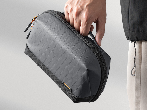 Zart und strapazierfähig: Außenseite der Henkeltasche ist aus 1200D-Polyester gefertigt, um Spritzer zu verhindern. Die Innenschicht besteht aus weichem Lycra, um Gegenstände vor Kollisionen und Reibung zu schützen. Die doppelten YKK-Reißverschlüsse lassen sich leicht und reibungslos schließen.
