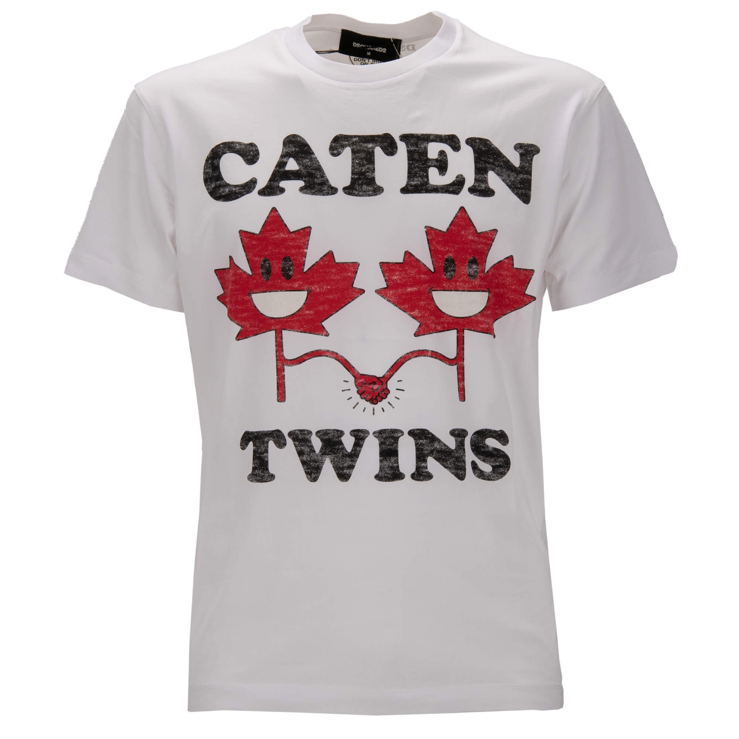- T-shirt di cotone con stampa logo di Caten Twin in rosso, bianco e nero da DSquared2