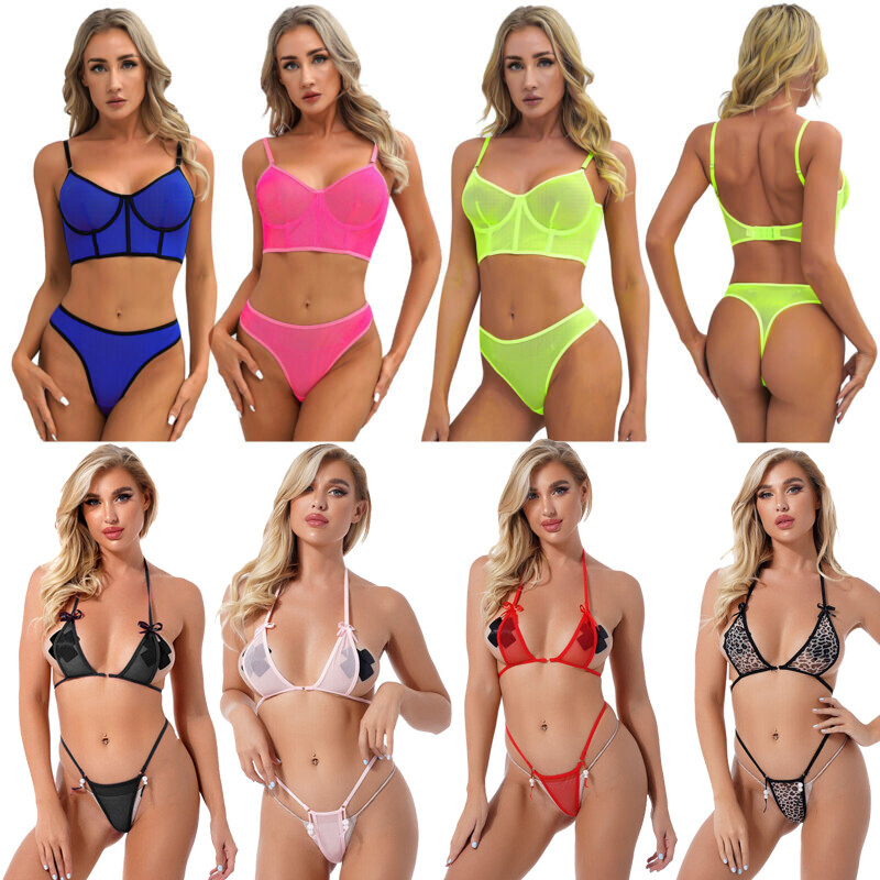 Low rise with adjustable tie, see through sheer mesh mini coverage design, T-back, solid color.