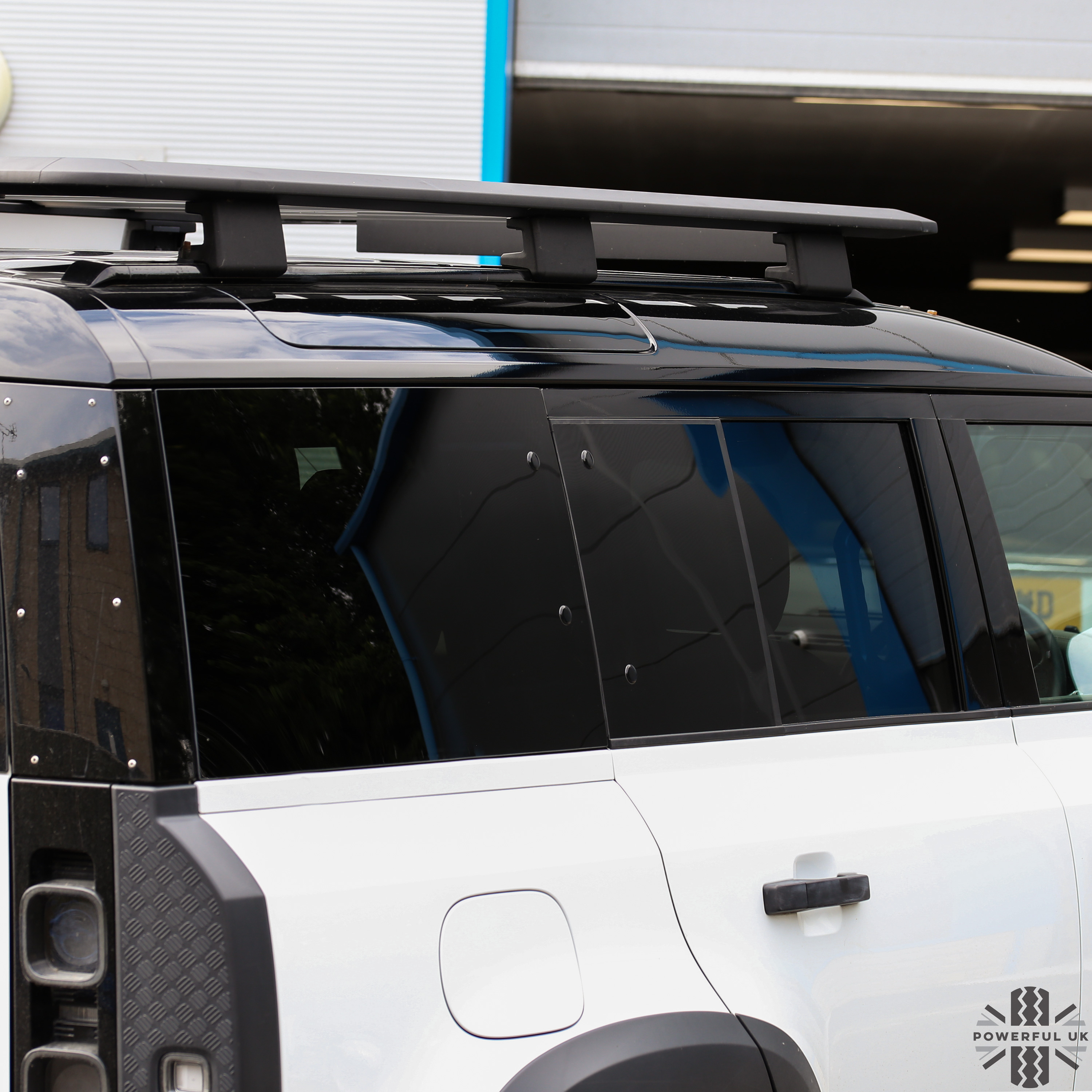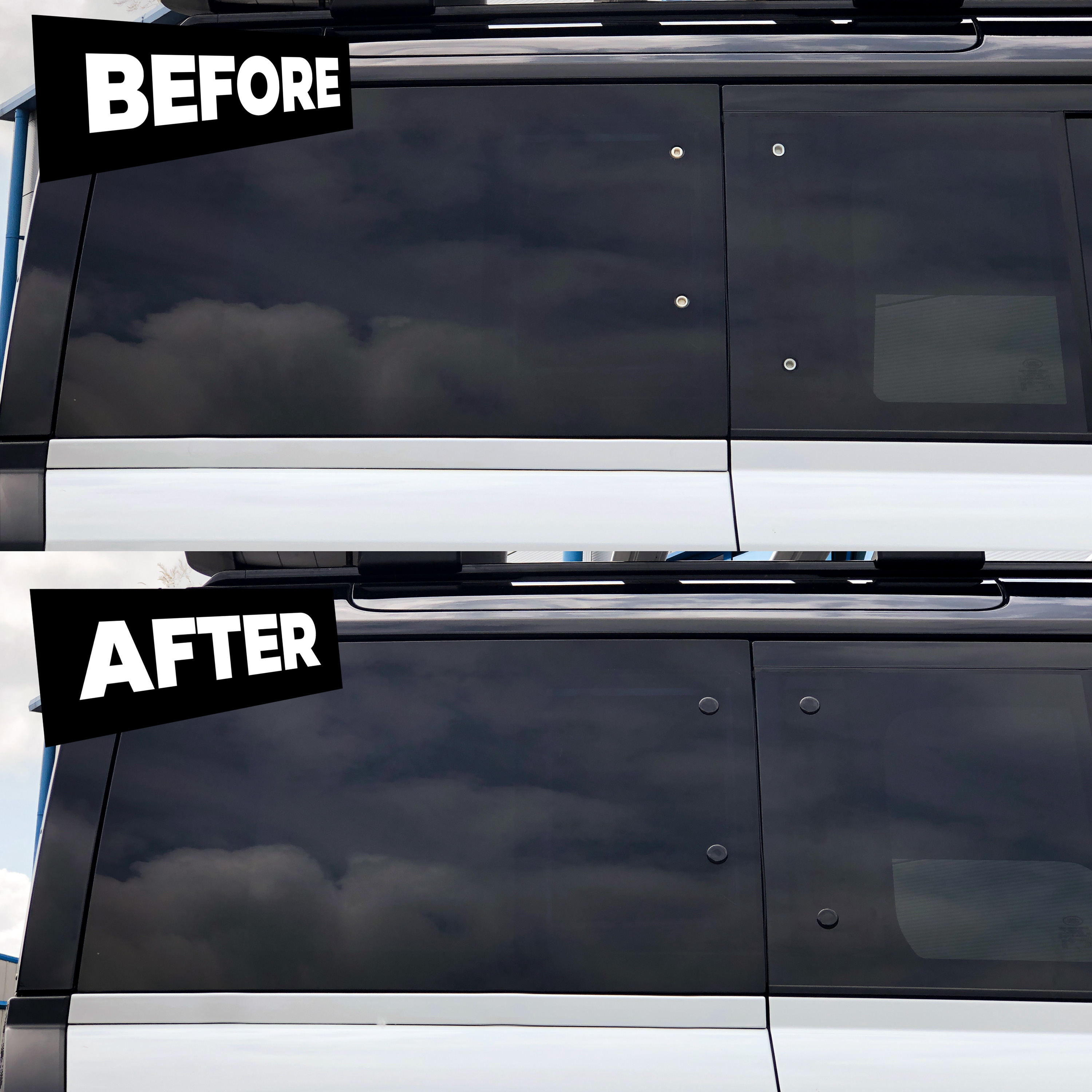 These stickers are sized to cover the fixing holes that are exposed if you remove the side panel on the Defender 110.