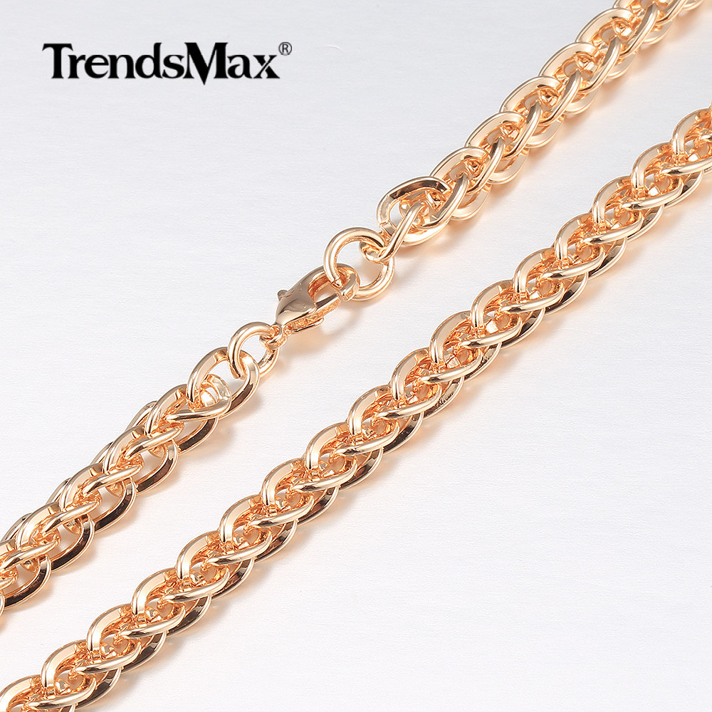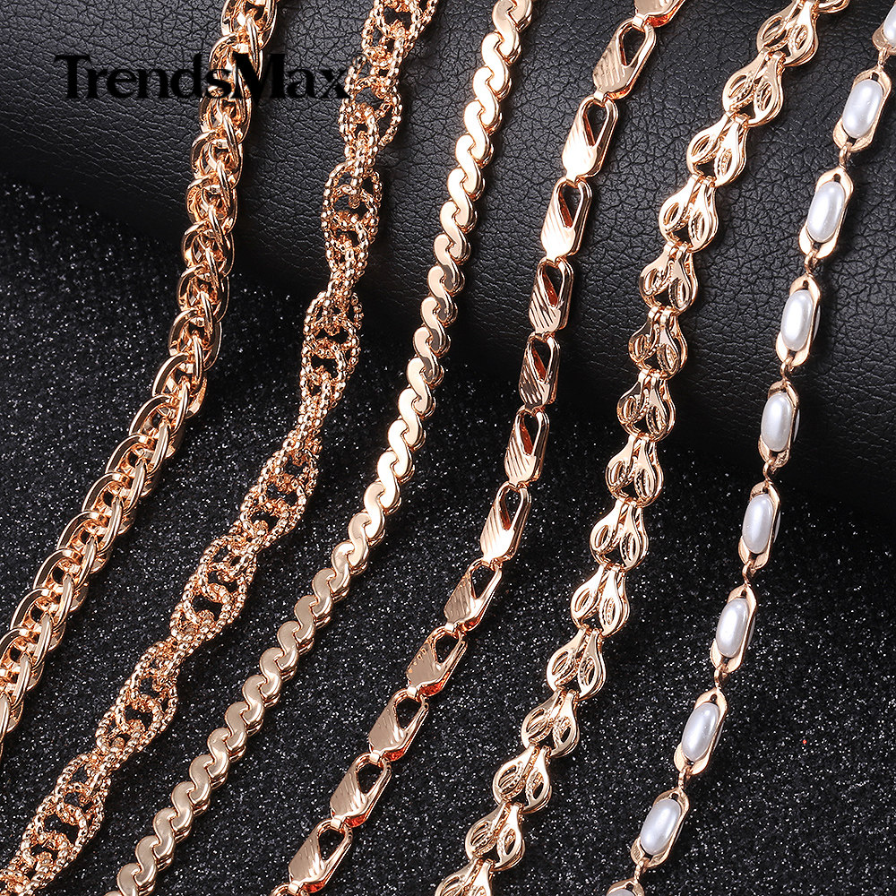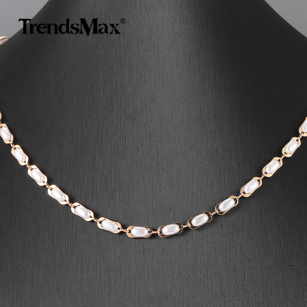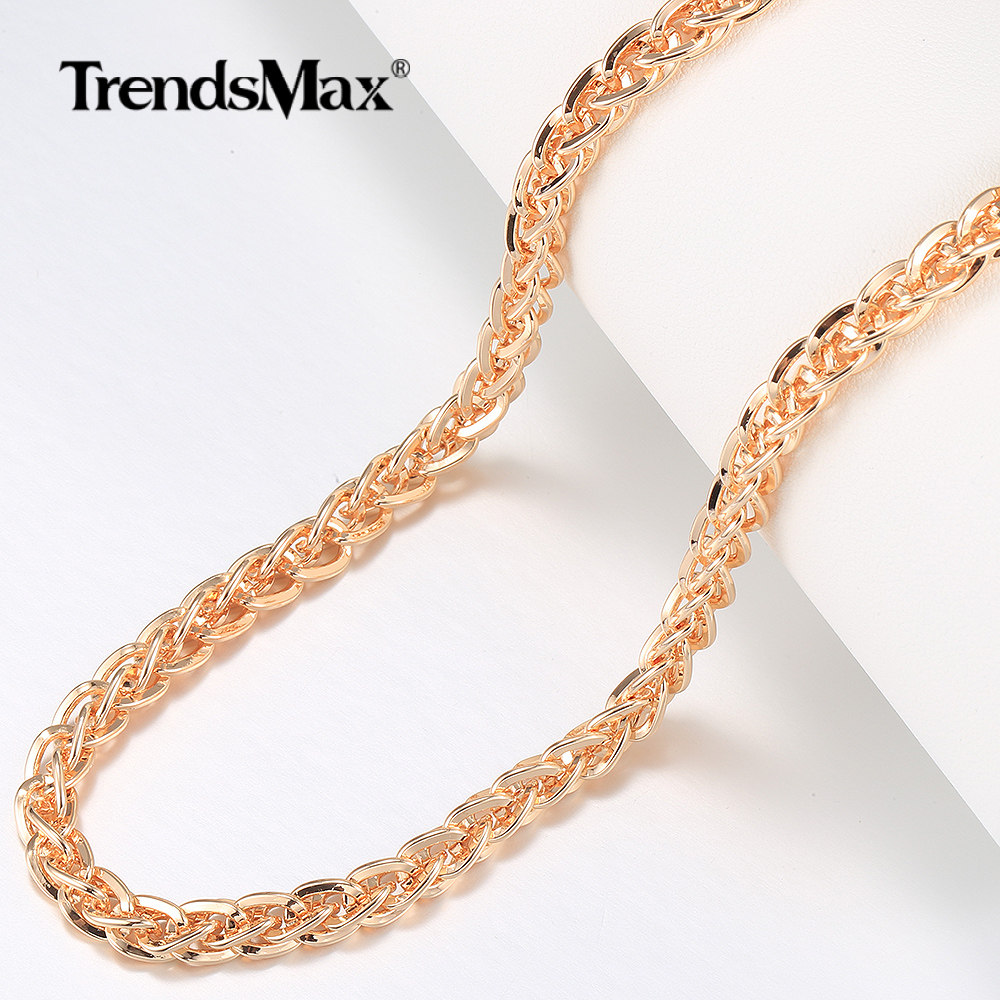 585 Rose Gold Twisted Weave/Herringbone/White Pearl Bead Chain Necklace 20/24"