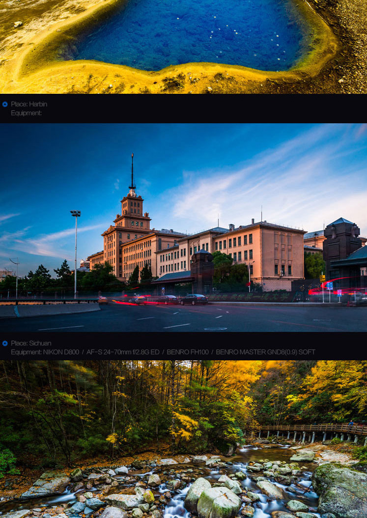 Type:BENRO Master FilterSize:100*100mmMaterial:B270 optical glassGraduated Process:vacuum coating at double surfaceHigh resolution:YesAnti-static function:YesReflection rate:1.5%Package:Yes