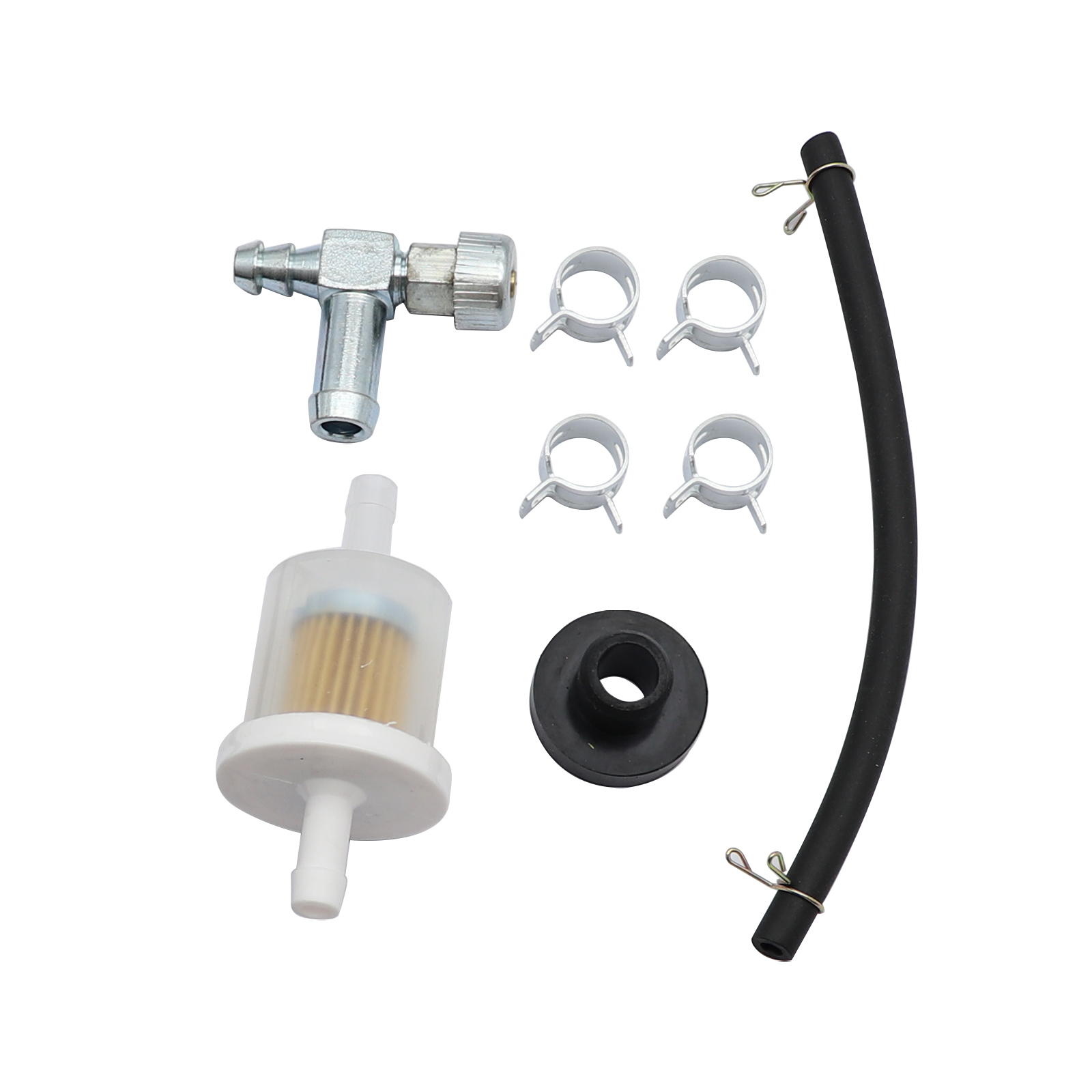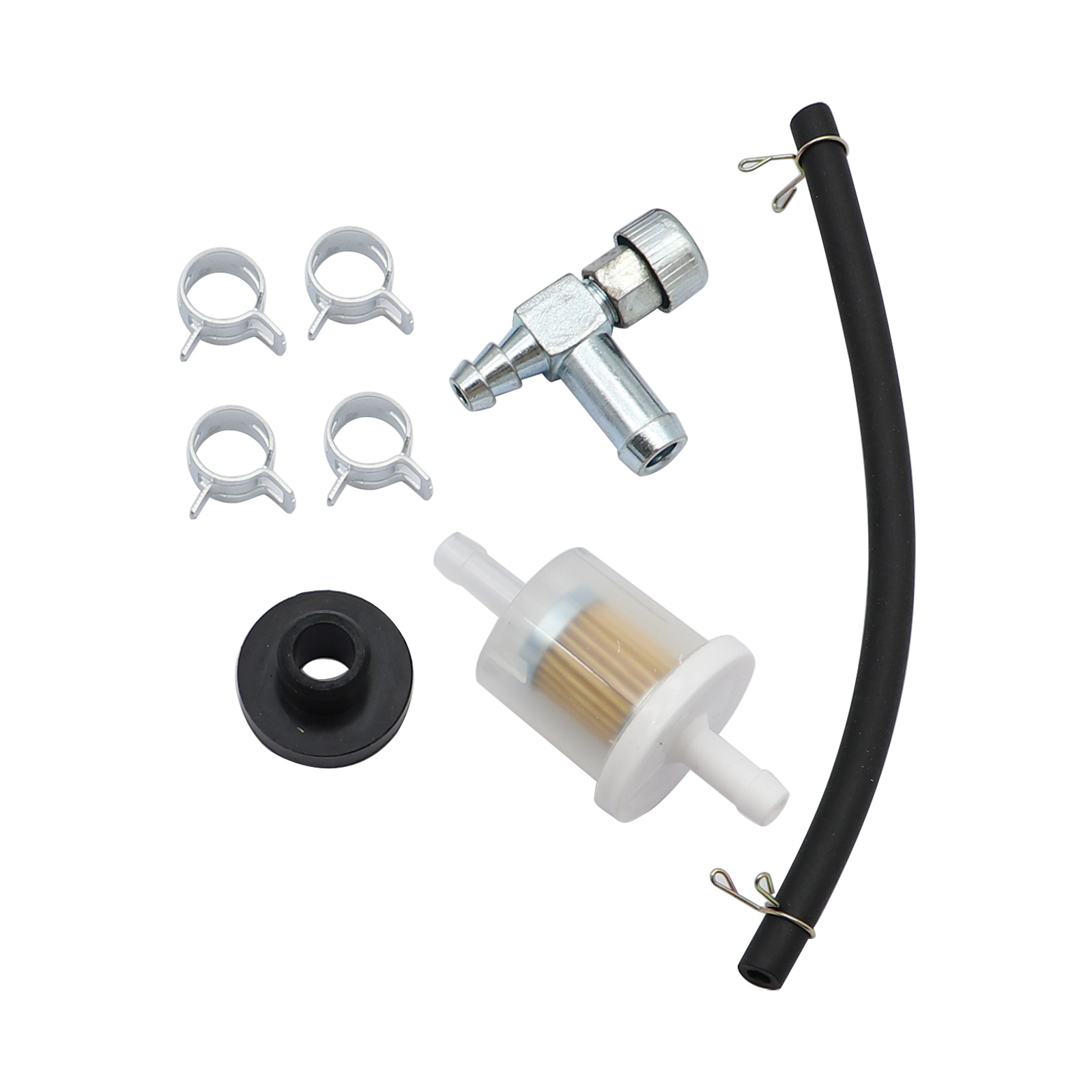 Package: 1x Fuel Gas Tank Grommet + 1x Shut Off Valve + 1x fuel line + 2x fuel filter + 2x clip clamp