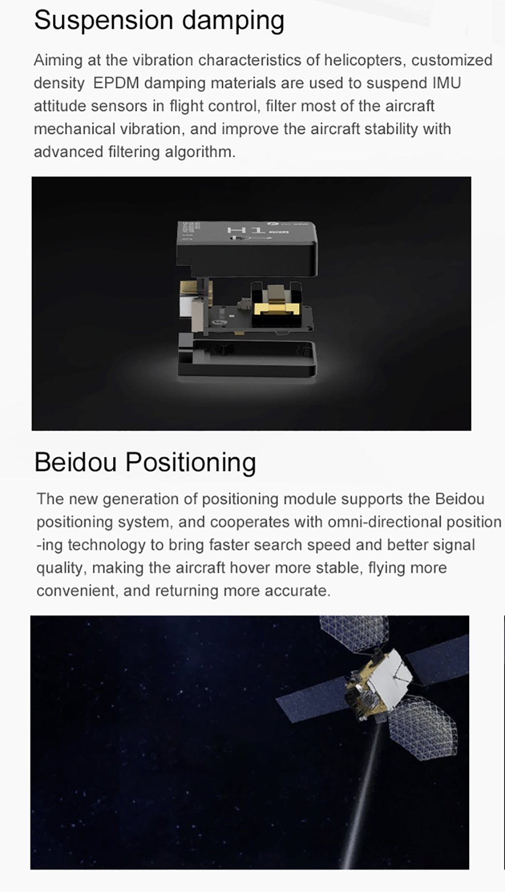 3.GPS Helicopter: With newest H1 flight control system, support GPS and altitude hover flight.Hover Level: +/- 1 . 5m ( GPS normal )Vertical : +/- 0 . 5m ( GPS normal )