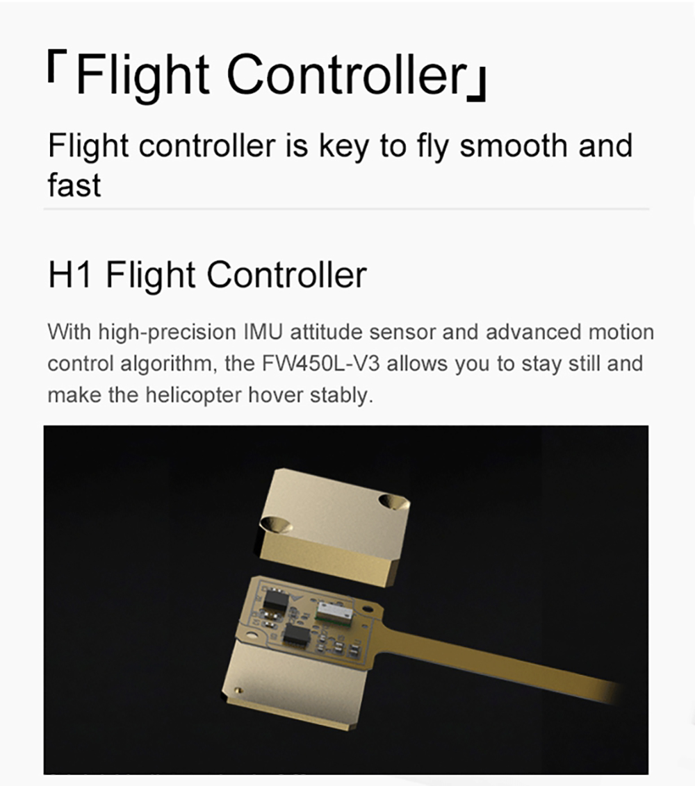 2.Stable Fly RC Helicopter: The Fly Wing FW450L-V3 is equipped with a new Beidou positioning systemand a high-precision IMU attitude calculation unit with a barometer .which makes the helicopter almost as simple and easy to fly as the drone in GPS mode . It has the flight experience of putting the stick and stopping when the stick is released
