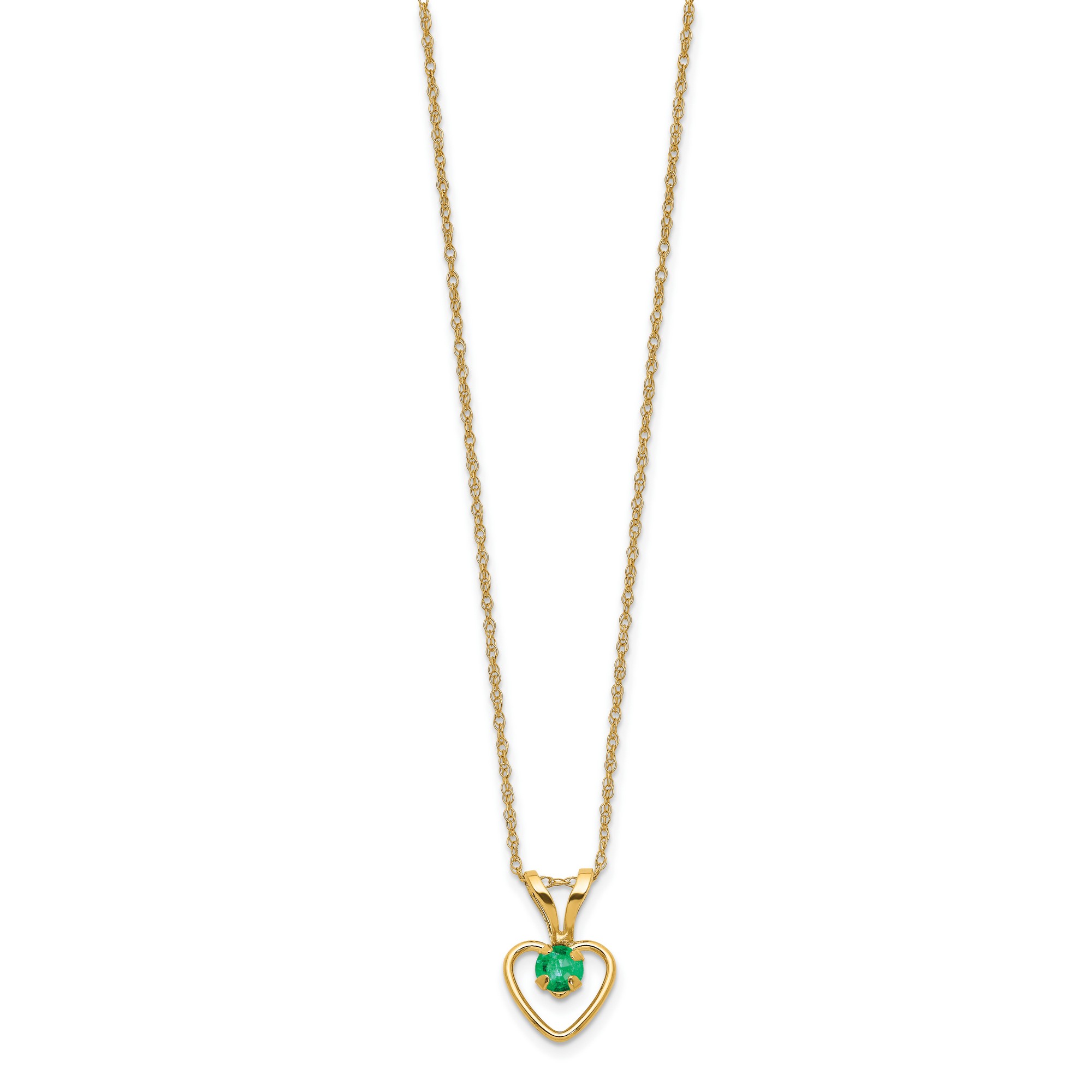 10k Yellow Gold Childrens 3mm Emerald Heart Birthstone Necklace