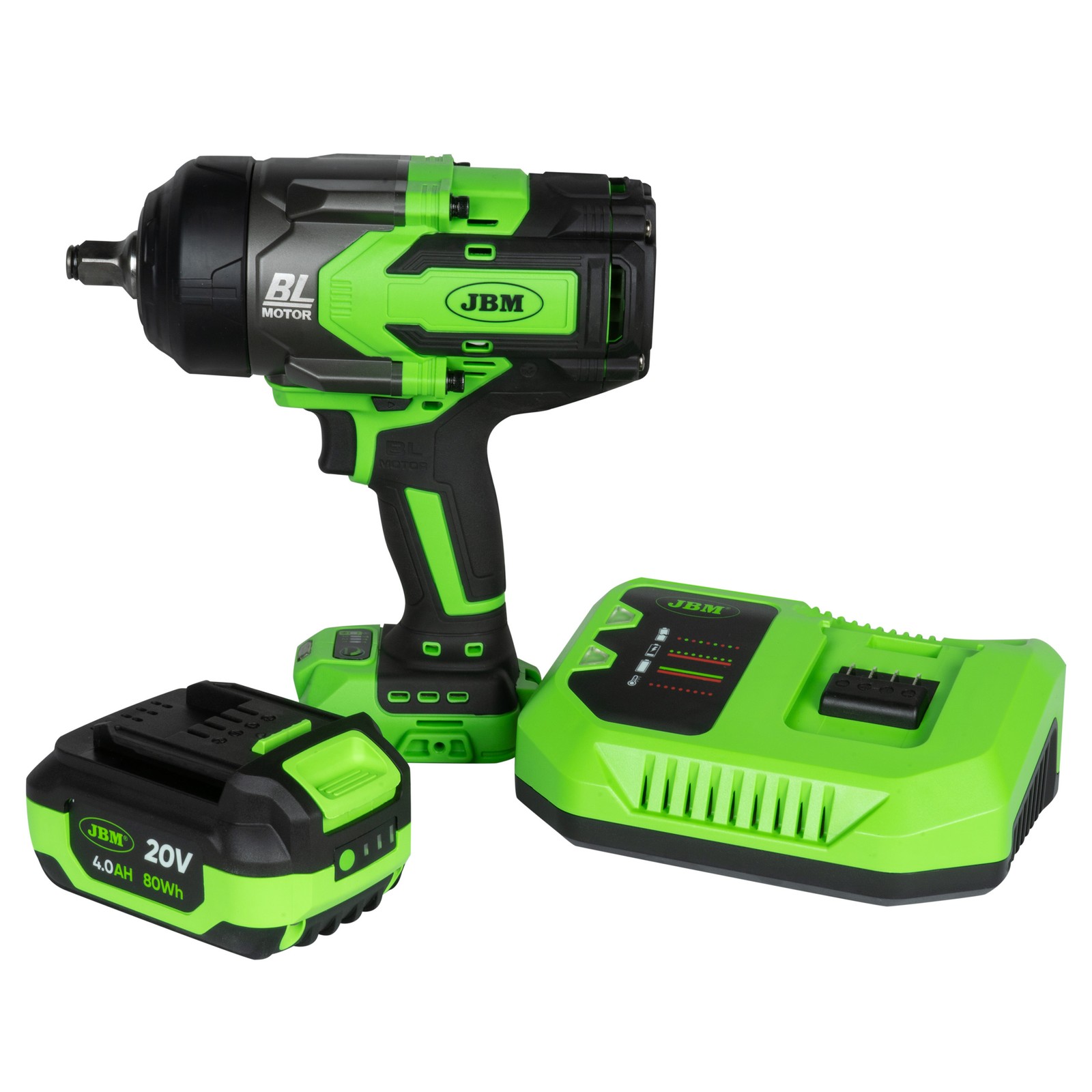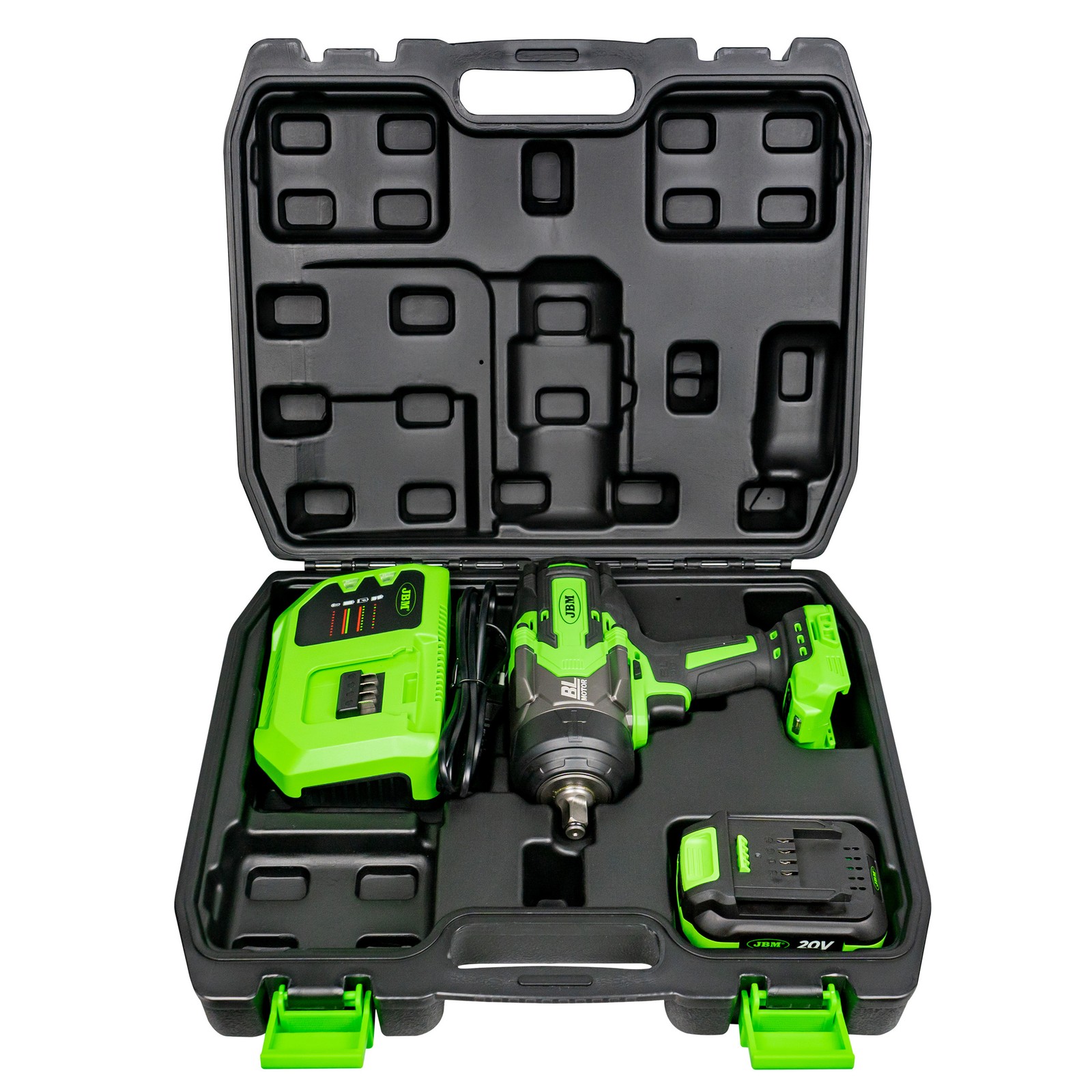 Akku-Schlagschrauber komplett mit einen 4Ah Li-Ion Akkus und Ladegerät. Konzipiert zum Anziehen und Lösen von Schrauben. Der Schlagschrauber ist mit einem LED-Licht für verbesserte Sichtbarkeit, einem variablen Geschwindigkeitsschalter und einem Vorwärts- / Rückwärtswahlschalter ausgestattet. Der ergonomische Griff des Akkuschraubers ermöglicht besseren Halt und präziseres Arbeiten.