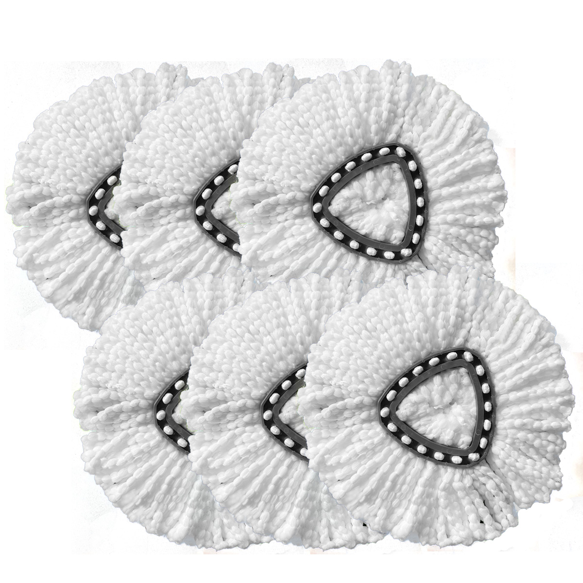 šćDurable & Reusableć You will get 6 pack replacement mop heads for your spin mop, perfect replacement for your spin mop system. Inner triangular rim size 4'' and the outer triangular rim size 6'' in diameter. Exactly fit 1- tank mop system.