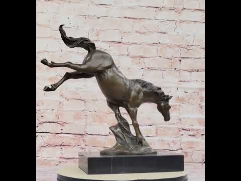 The sculpture's hind legs seamlessly mesh into the base, providing sturdy support while maintaining the fluidity of the horse's movement. Crafted using the traditional Lost Wax Method, this piece is a testament to meticulous craftsmanship and artistic skill. The dark brown patina finish adds depth and character, accentuating the intricate details and enhancing the overall aesthetic of the sculpture.