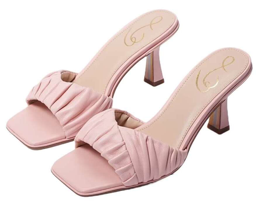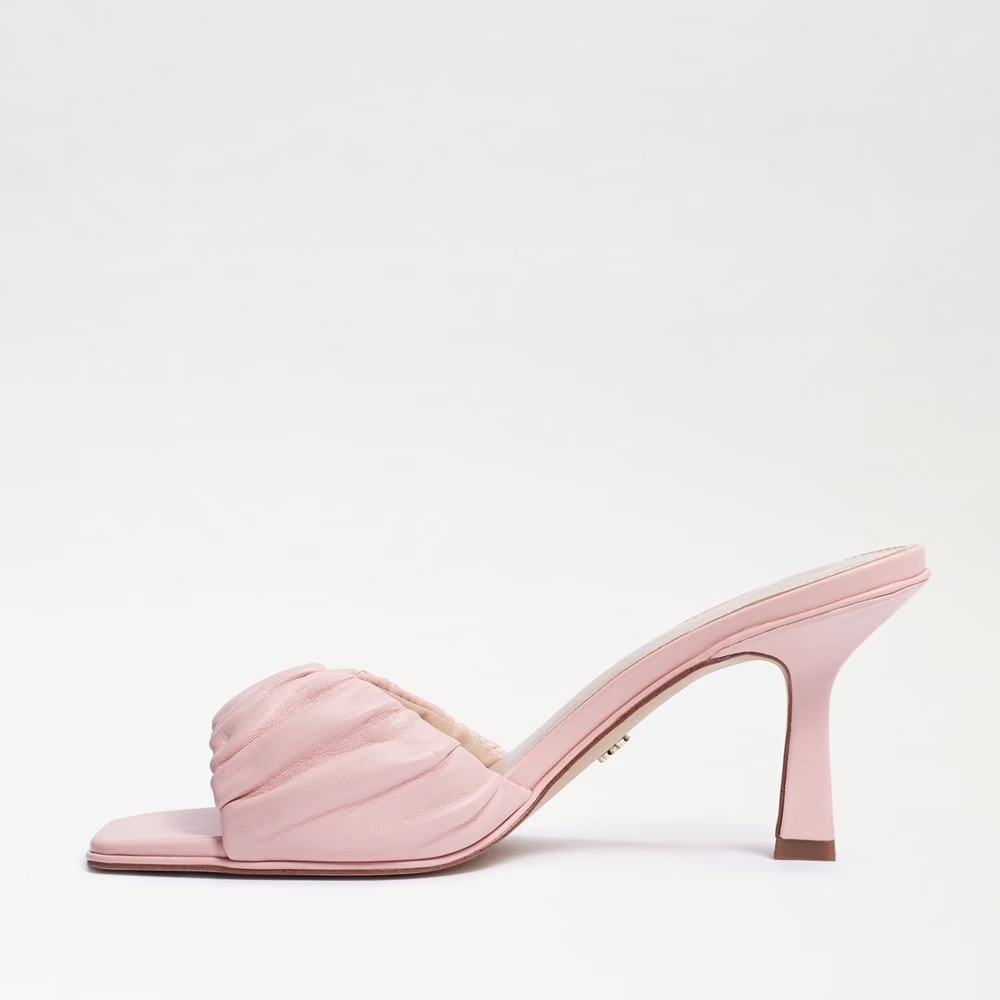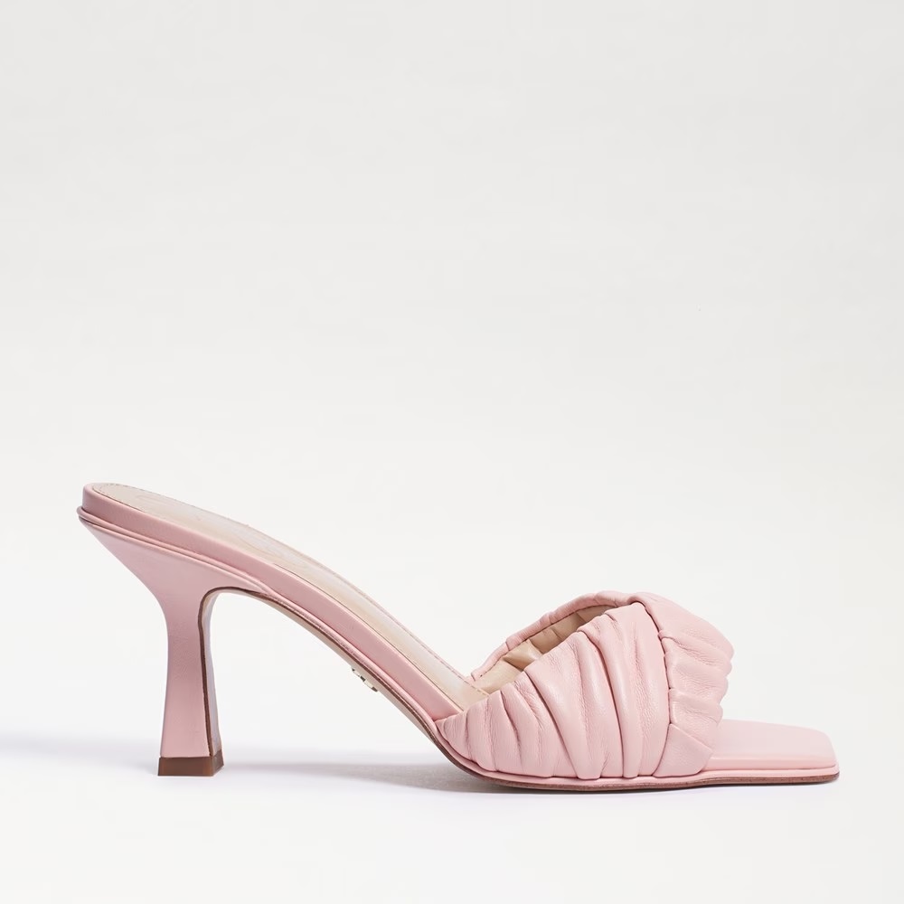 Kittie's ruched leather upper strap and slim spooled heel make for a voluptuously versatile day or night shoe.