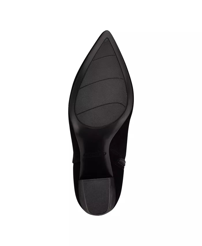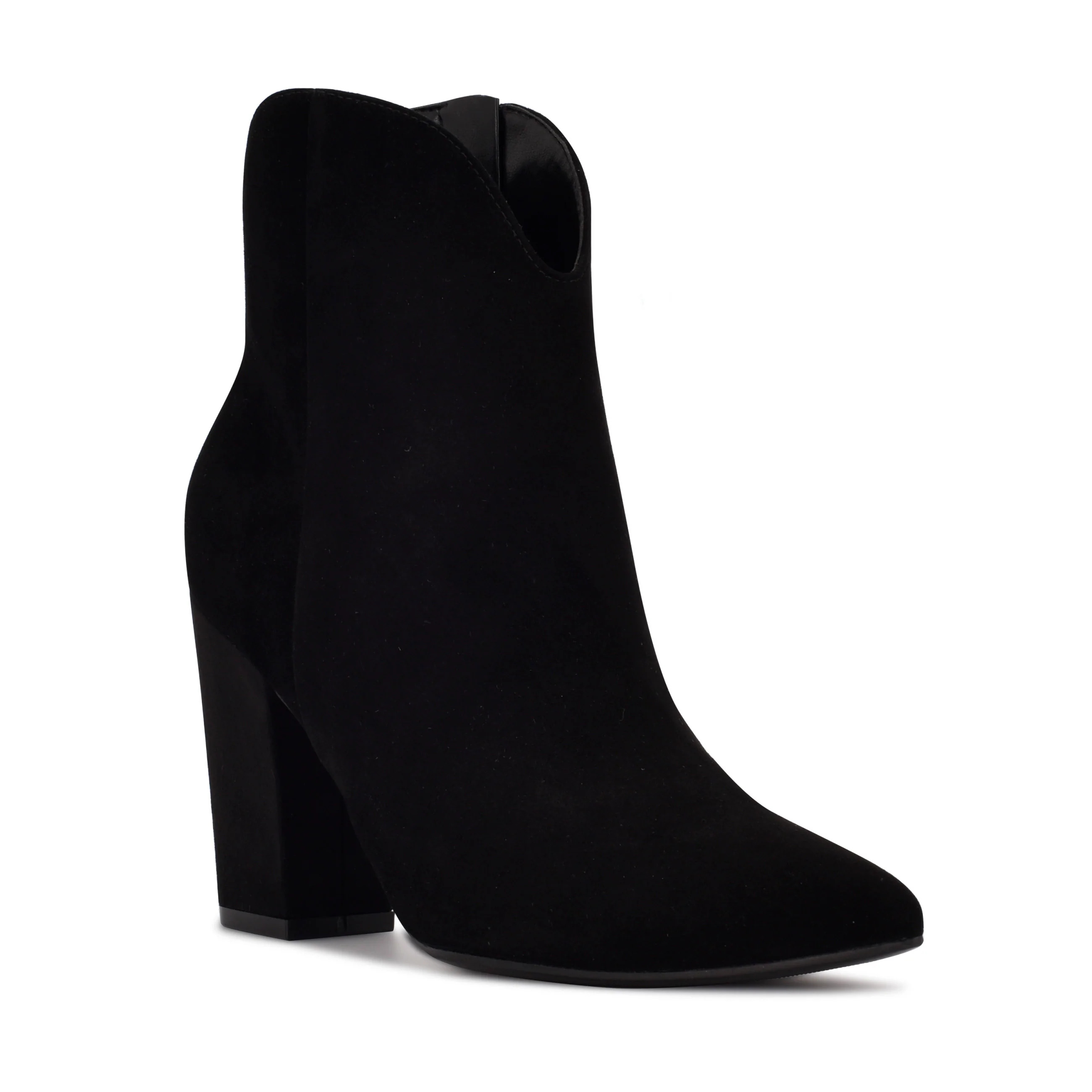 The Ghost bootie is the perfect wardrobe essential. Featuring high block heel, pointy toe and V-shaped cut out at the ankle.