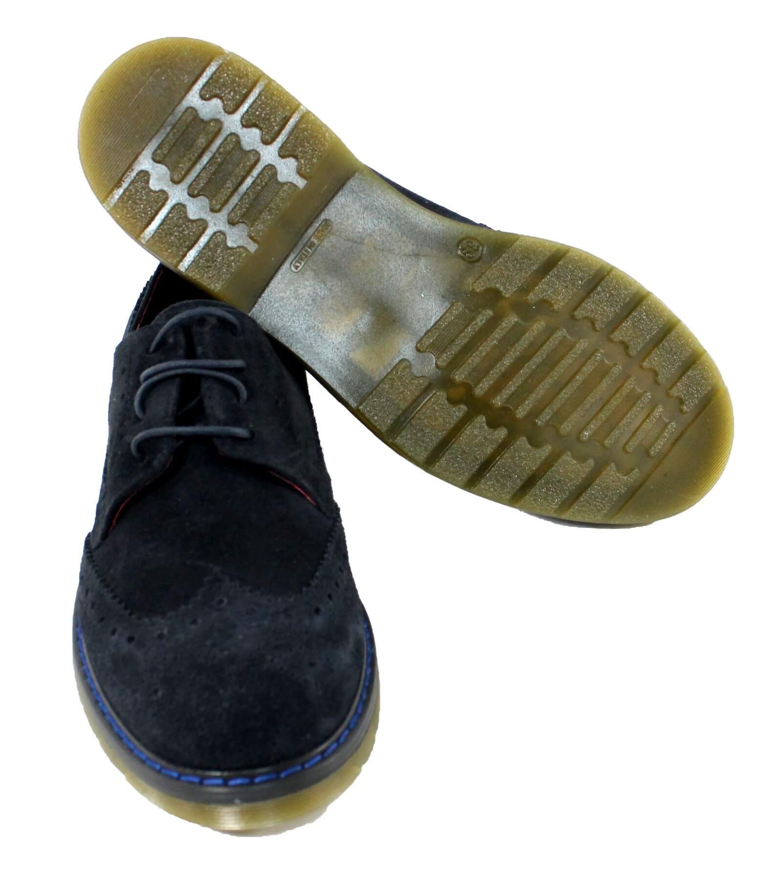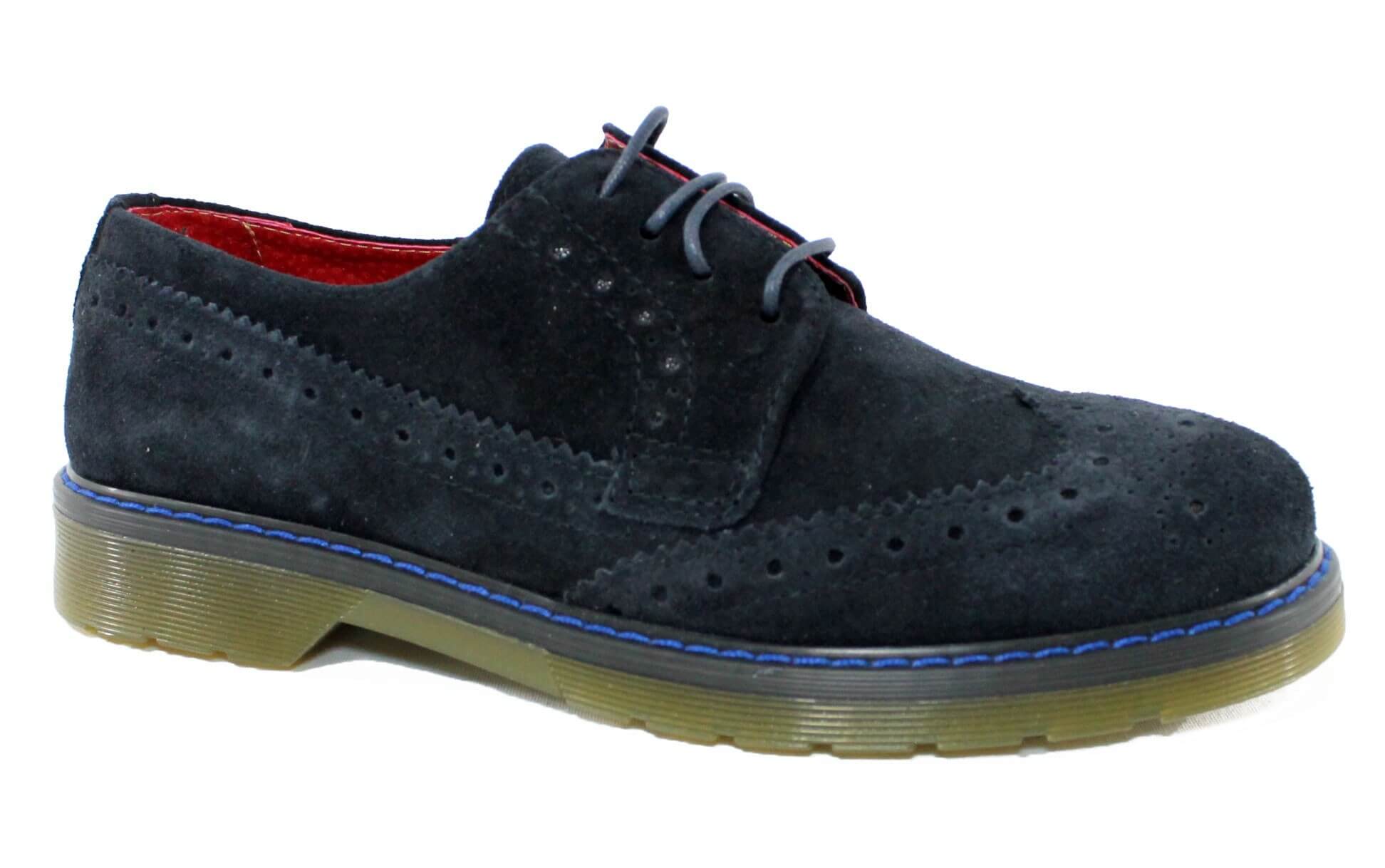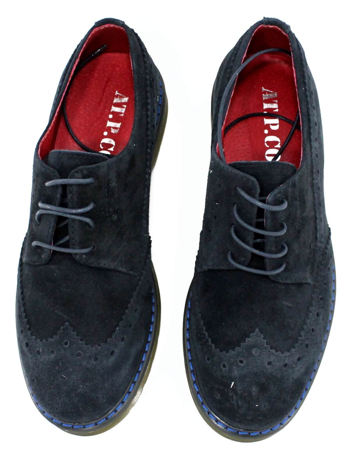 Scarpe AT.P.CO in pelle scamosciata, modello SP02, colore blu, lacci di chiusura, suola in gomma antiscivolo, lavorazione a coda di rondine. Made in Italy. Il colore non è uniforme perchè si vuole creare un effetto vintage.